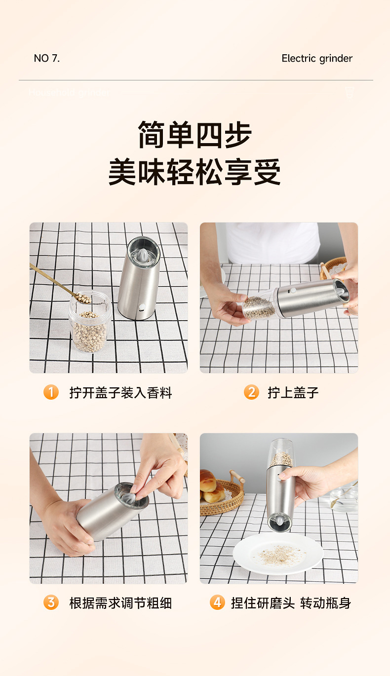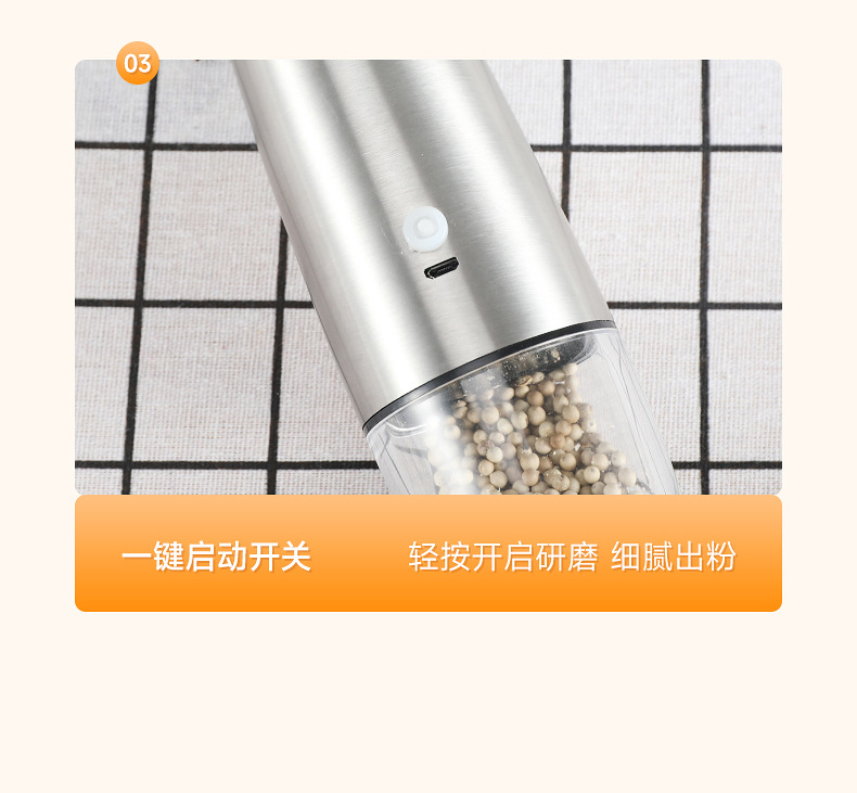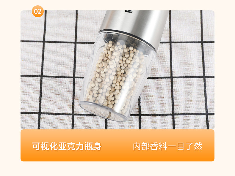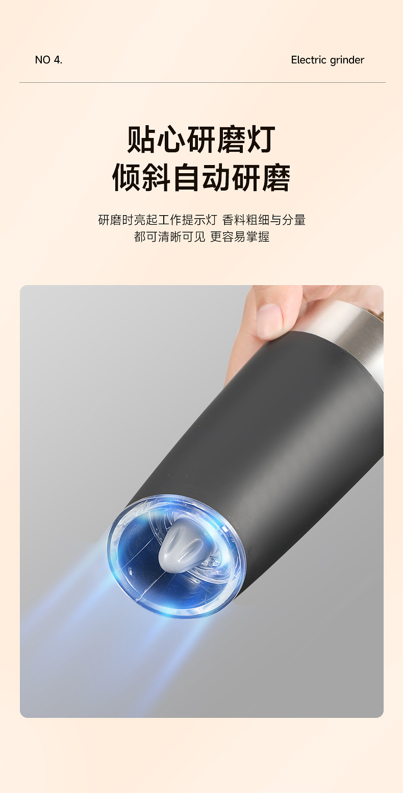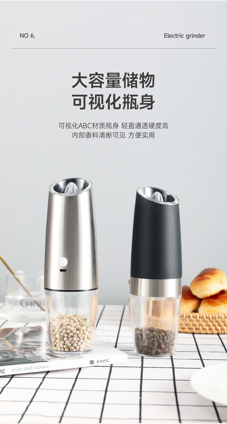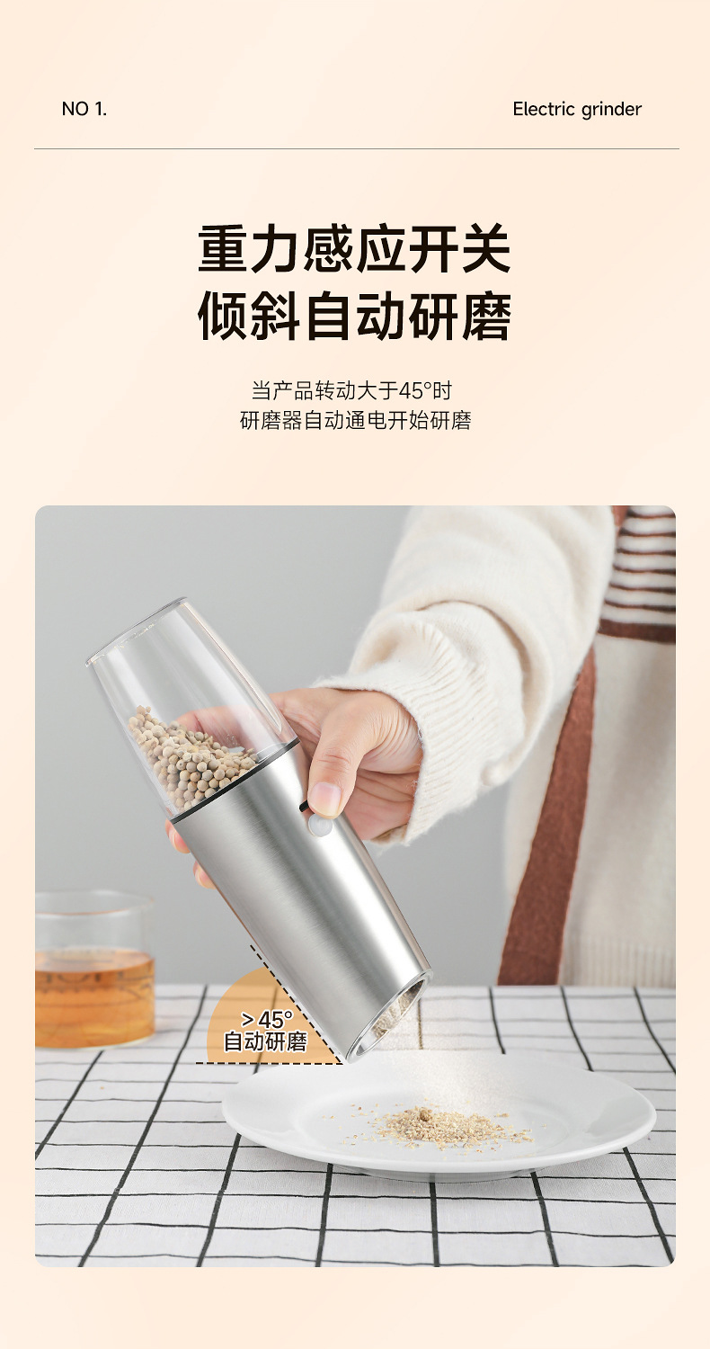 跨境感应胡椒粉海盐研磨器重力感应胡椒研磨器家用电动调料研磨器