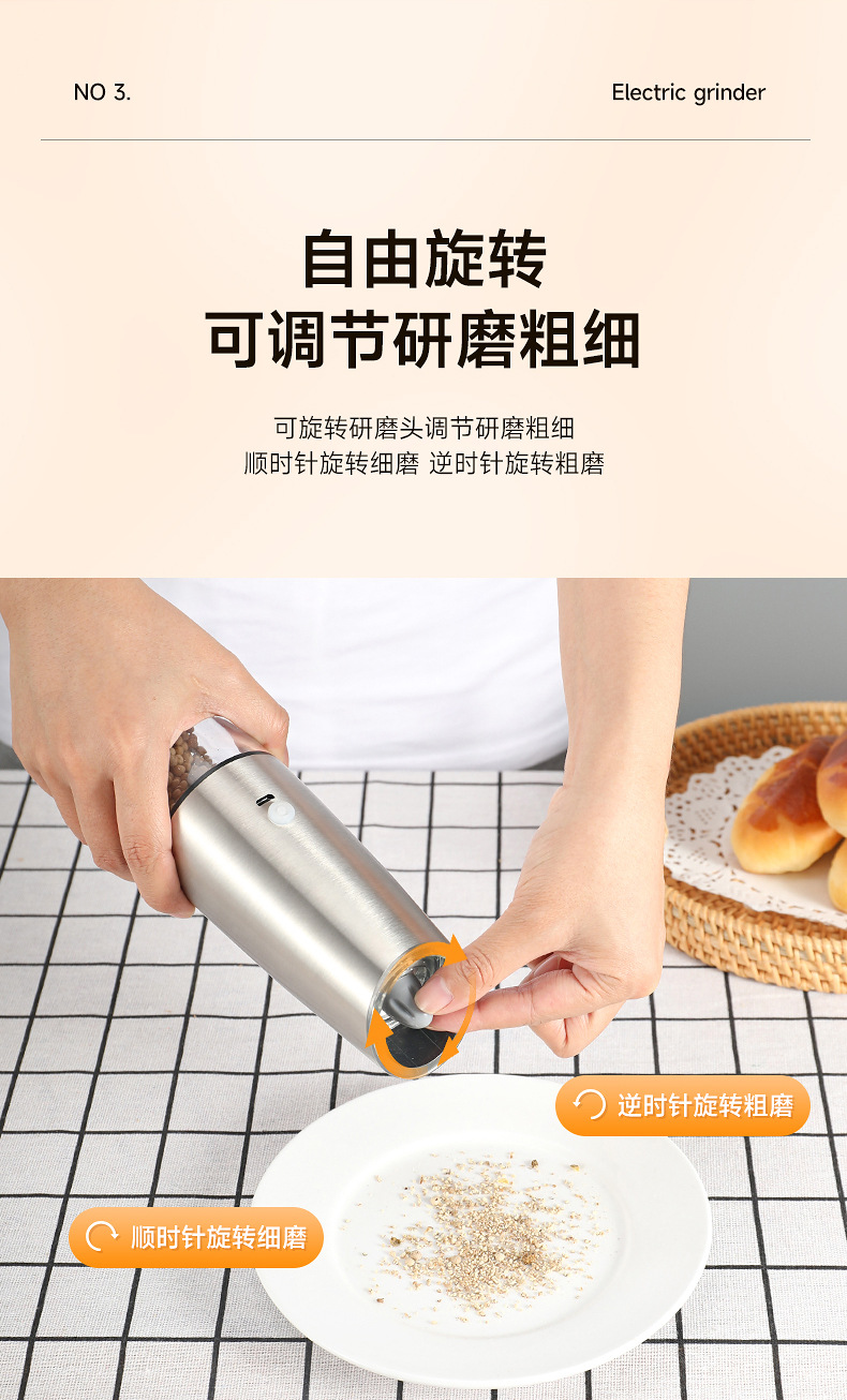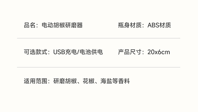 科力通胡椒研削重力誘導式自動粉砕機USB充電海塩電動胡椒研削器
