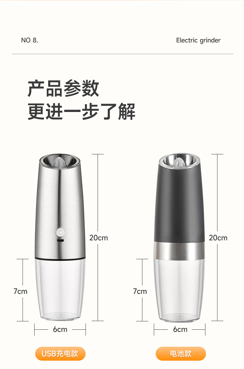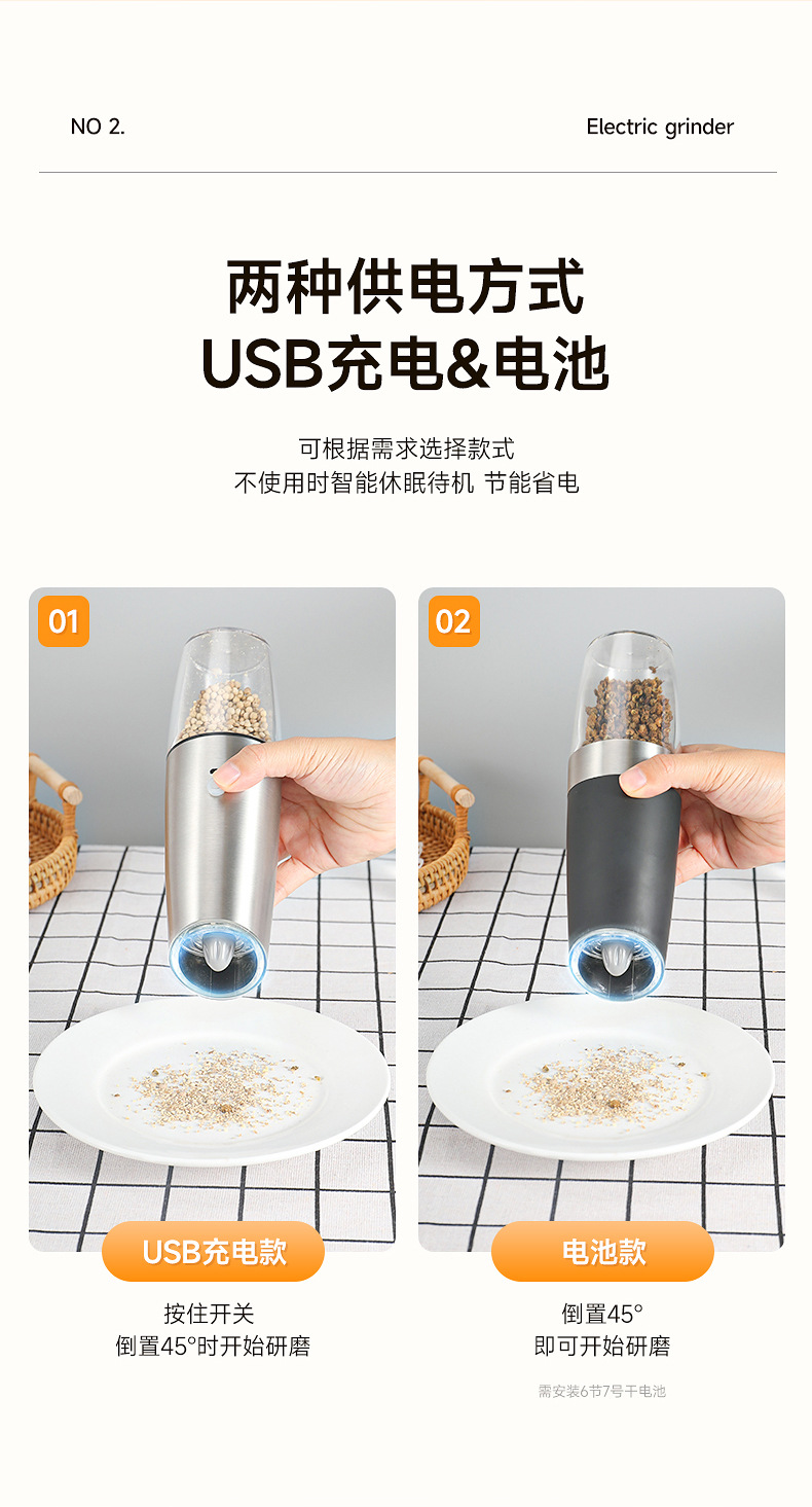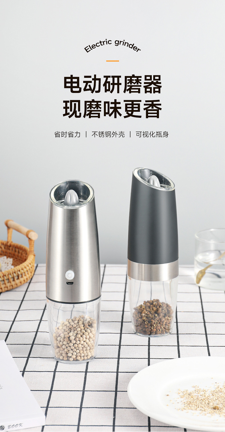 重力感应研磨器跨境重力感应迷你智能盐胡椒研磨机电动研磨器胡椒
