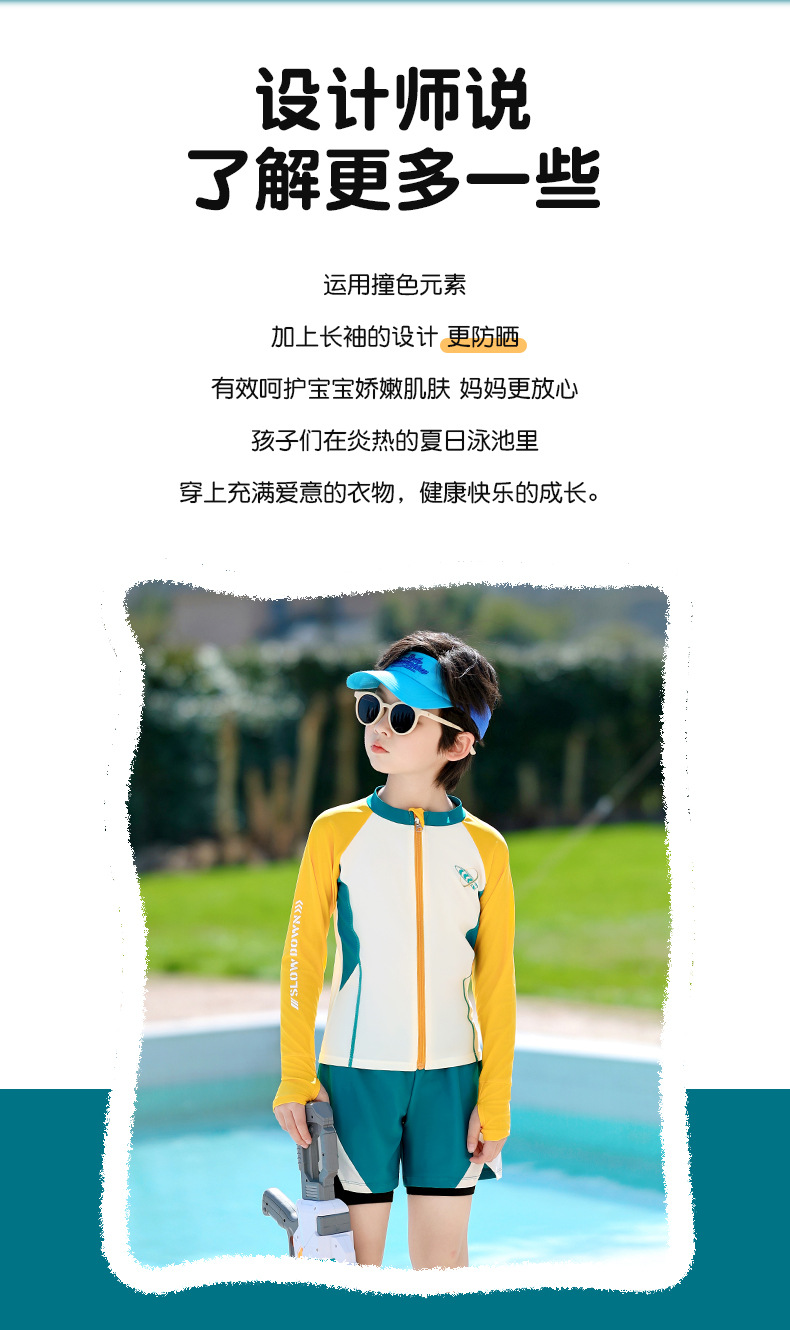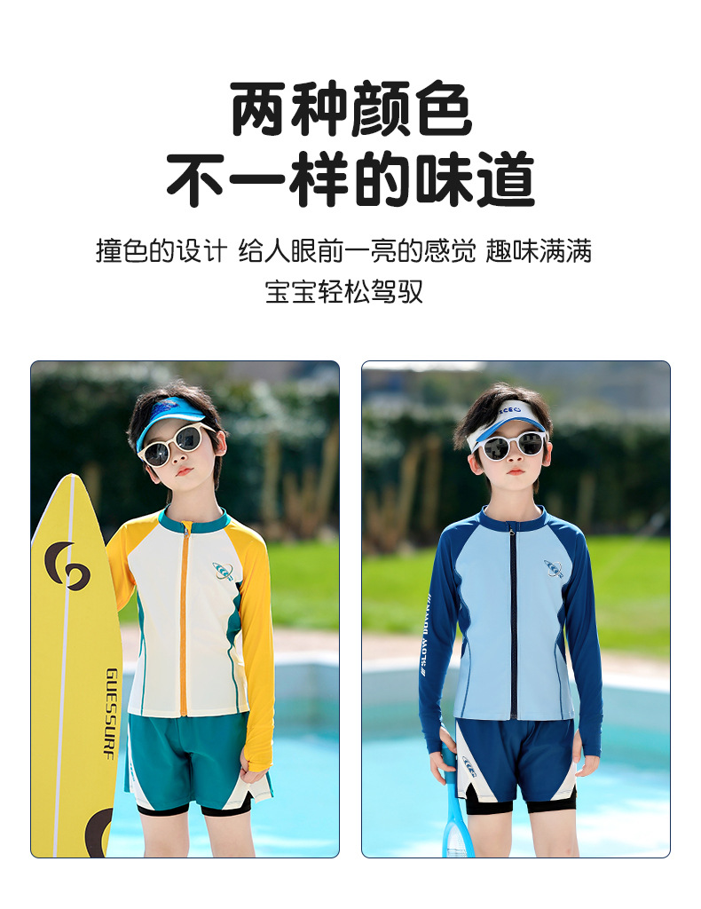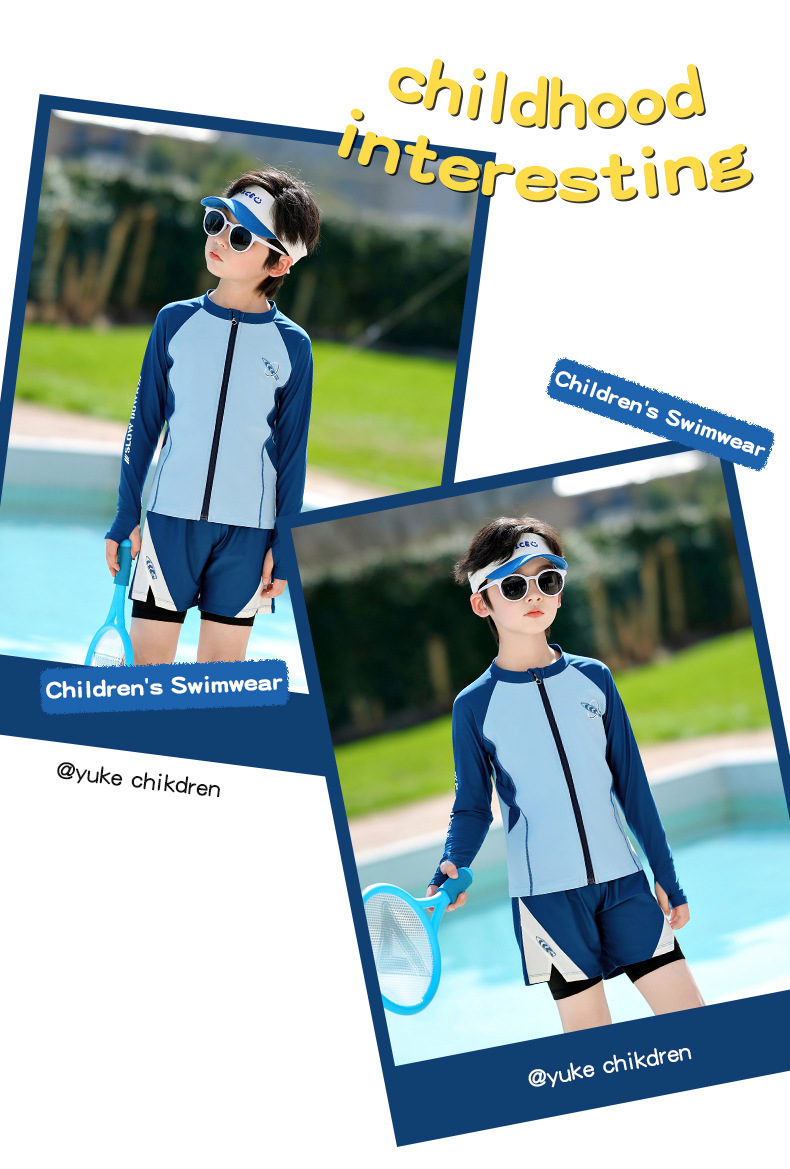 羽克儿童泳衣两件套儿童男童泳装分体款新款男童游泳衣套装新