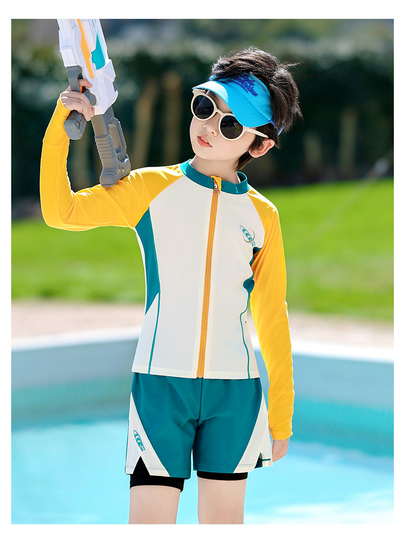 子供の水着の男の子の中の大きい子供の25新型の男の子の分体の水着の青少年の水泳のズボンのスーツのtシャツの半袖