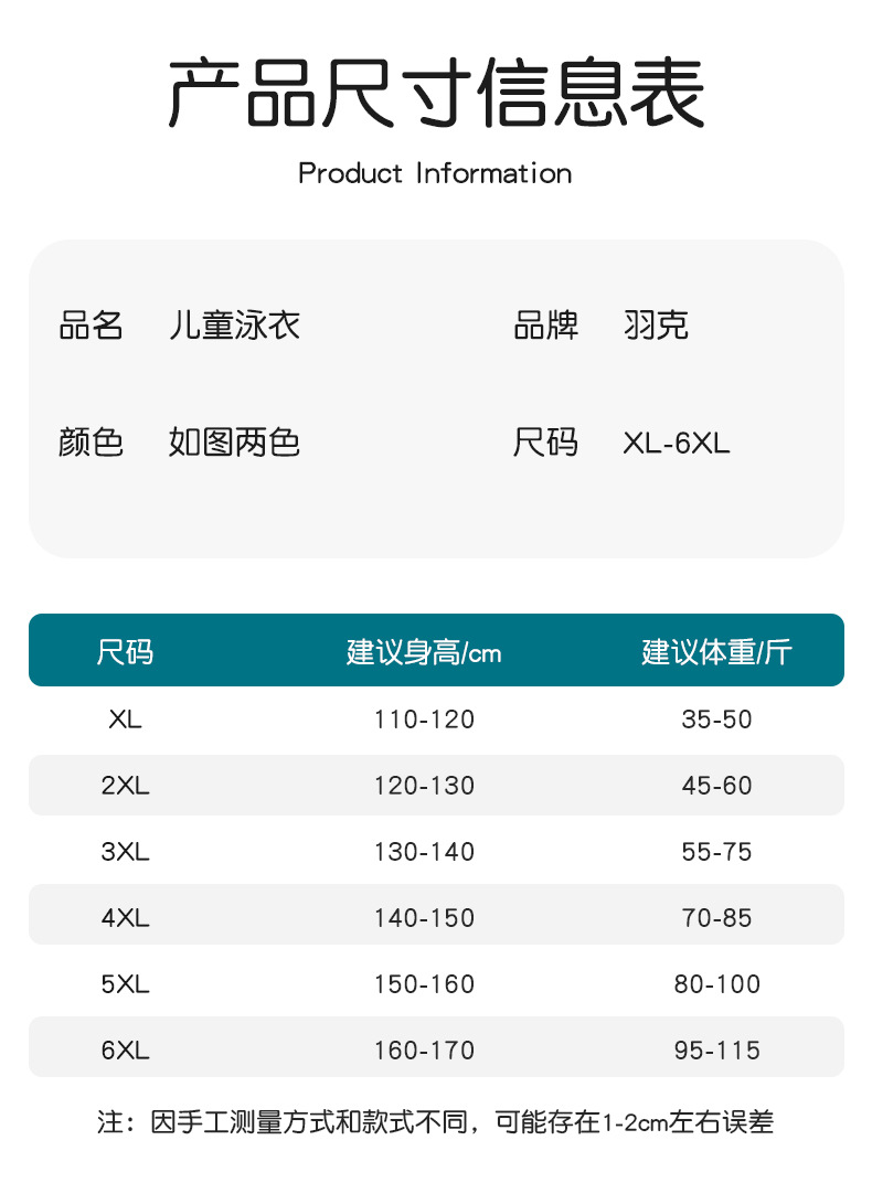 サイズ XL(推奨身長110~120cm),2XL (推奨身長120-130cm),3XL (推奨身長130-140cm),4XL (推奨身長140-150cm),5XL (推奨身長150-160cm),6XL (推奨身長160-170cm)