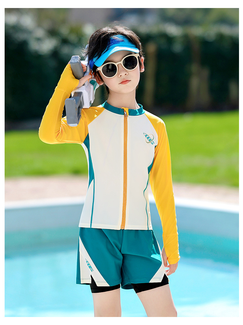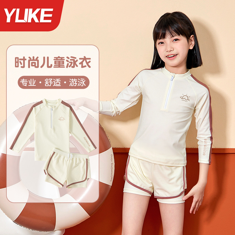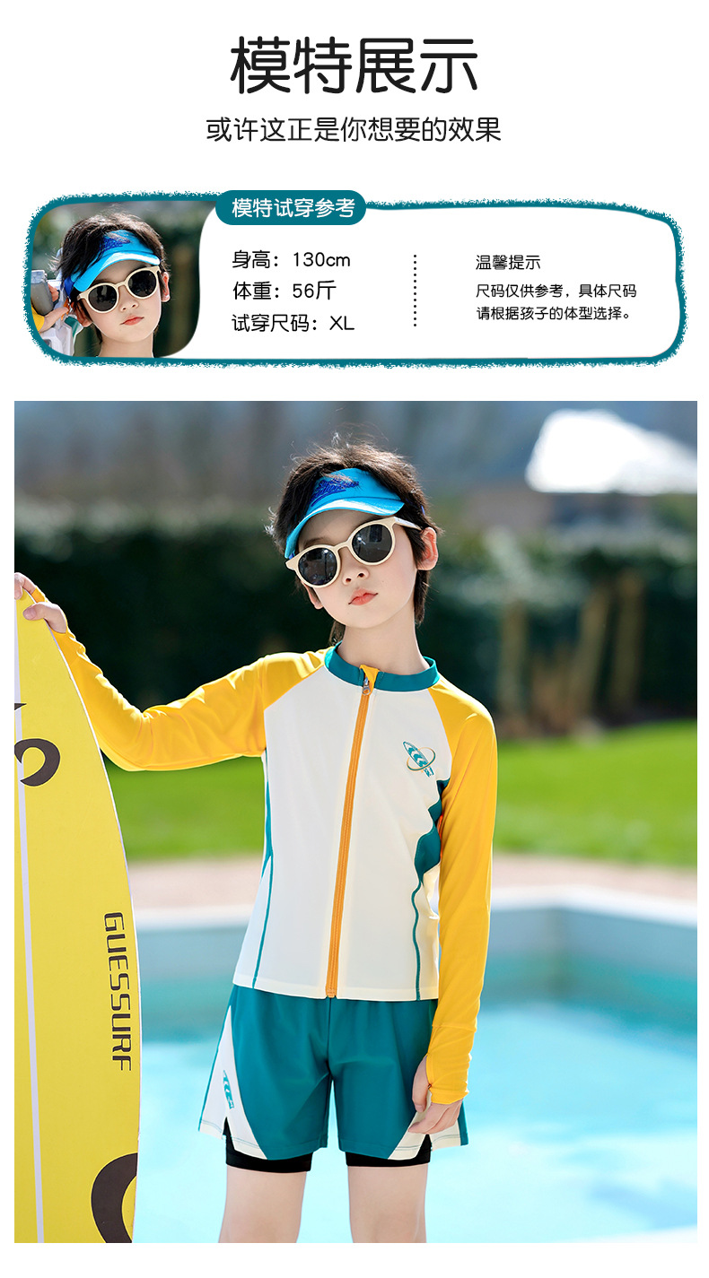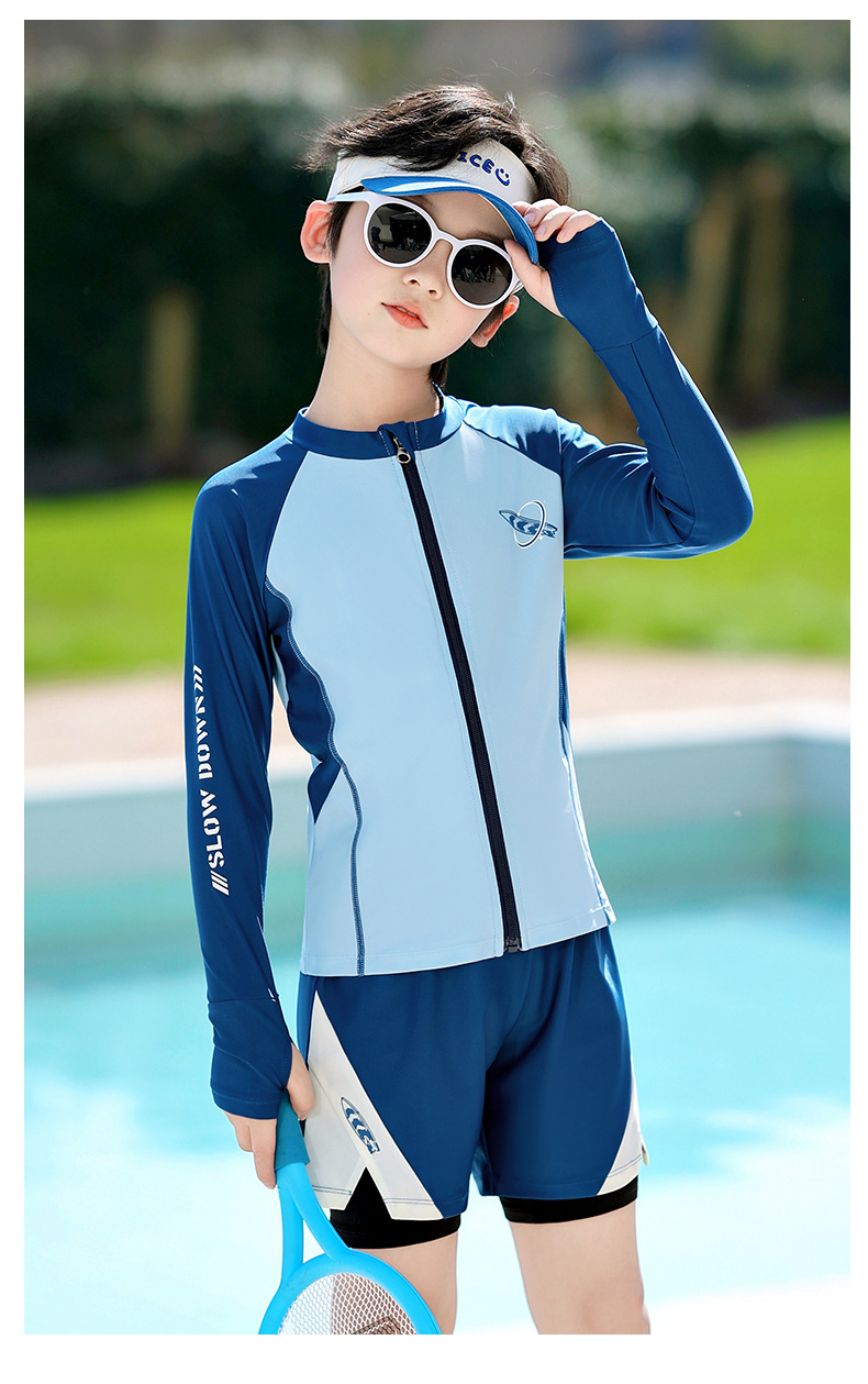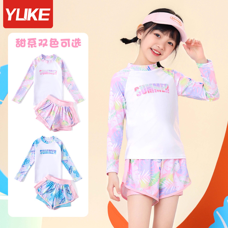 子供用水着新品スプリット女の子水着中大きい子供長袖速乾日焼け止め水着女の子保守水着