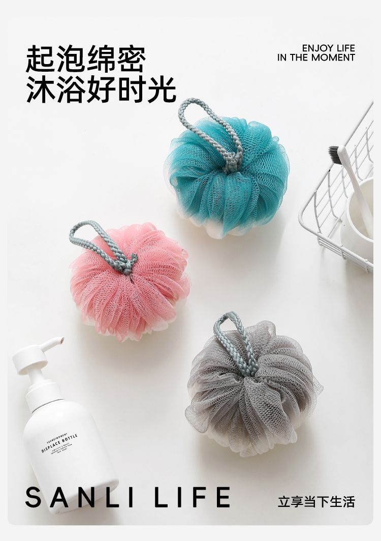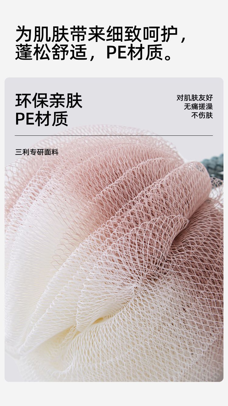 三利タオルの新型PE入浴ボールは泡を出さないで、お風呂に入ります。
