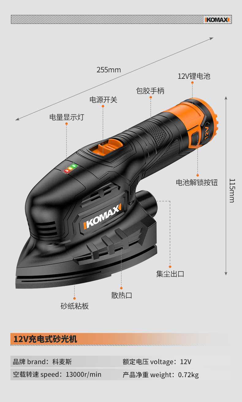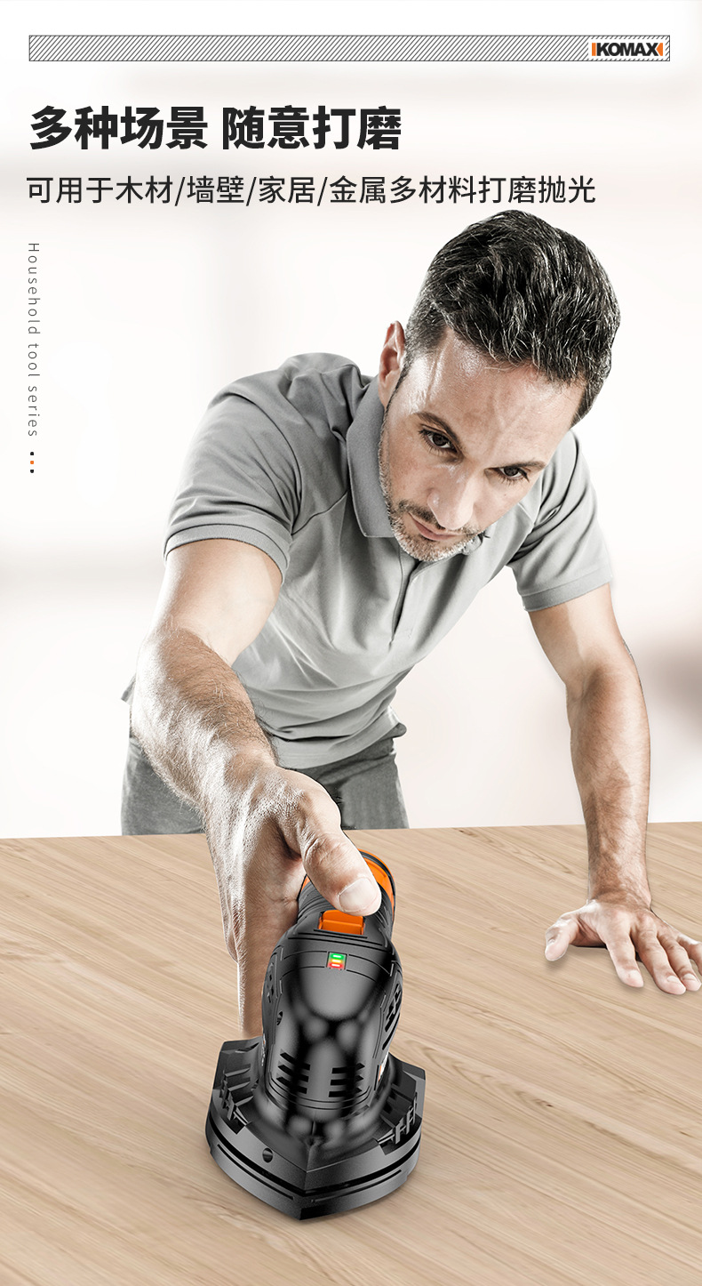 跨境无刷锂电砂光机方形三角砂纸机墙面家具木工多功能打磨神器