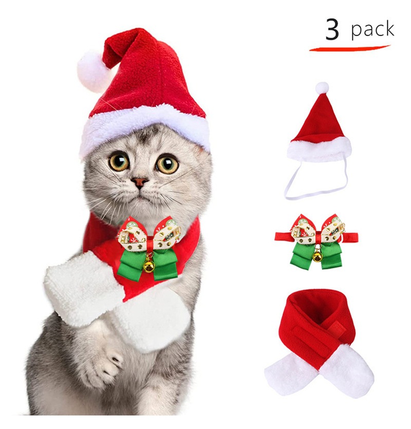 新しいクリスマスペットの首を囲む帽子セットは、萌え猫クリスマス犬セットを販売しています