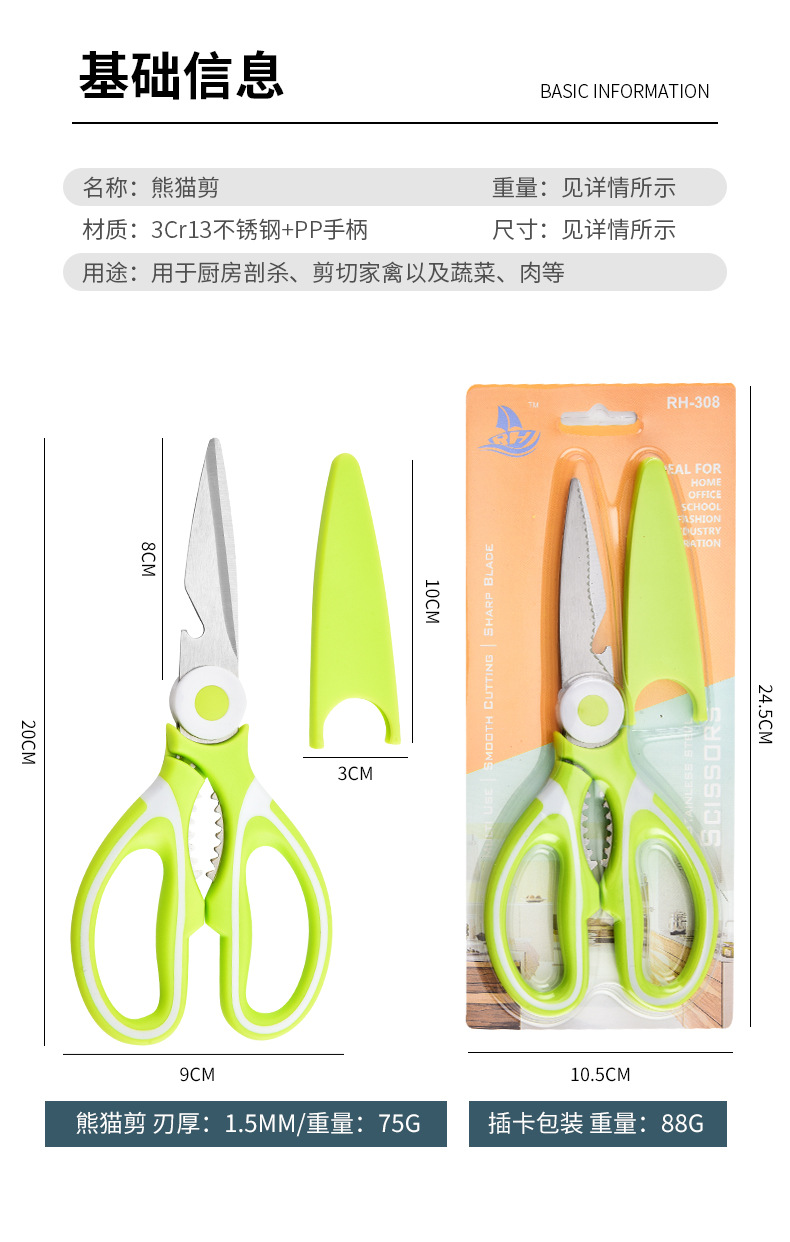 绿色网红熊猫剪刀 剪鸡骨夹核桃剖鱼多功能不锈钢家用厨房专用剪