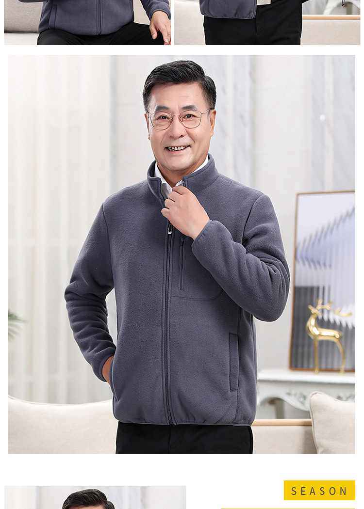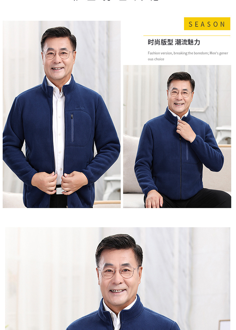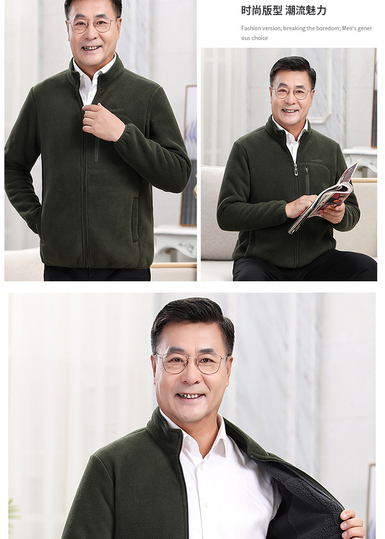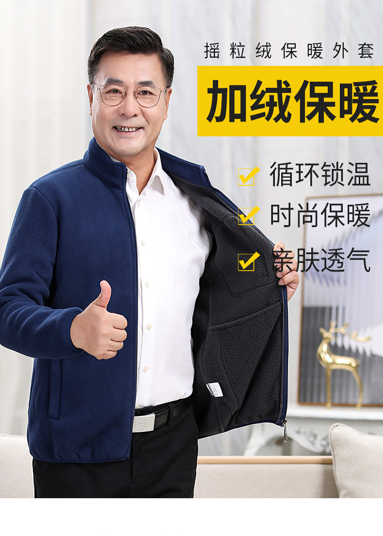 お父さんの大きいサイズのフリースのスウェットの中で年配の男性の秋の服のコートはスウェットの中年の男性のおじいさんのジャケットをつかみます。