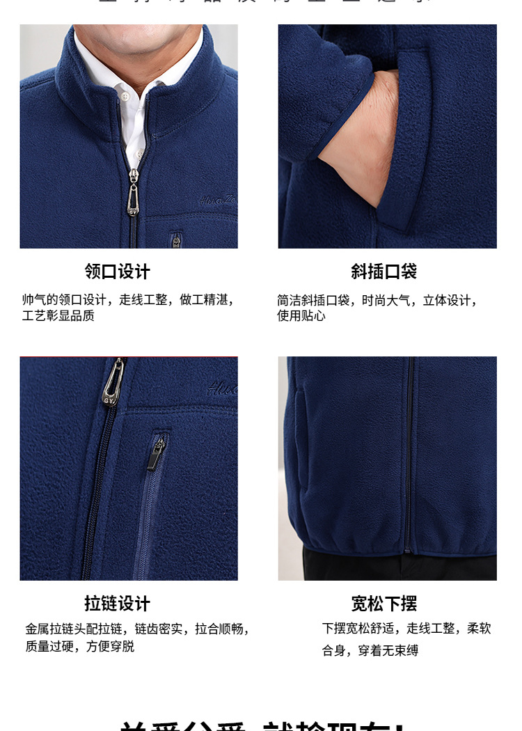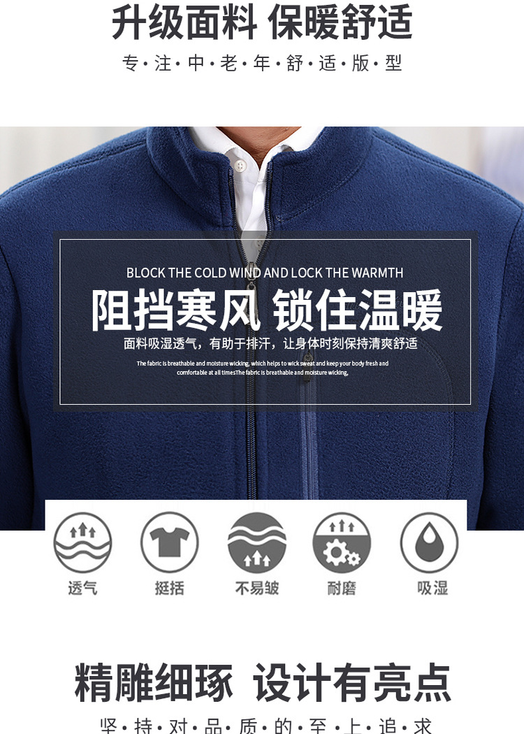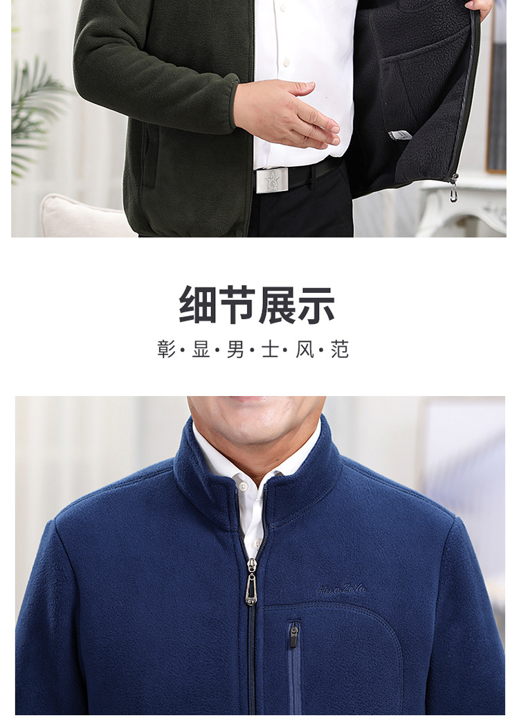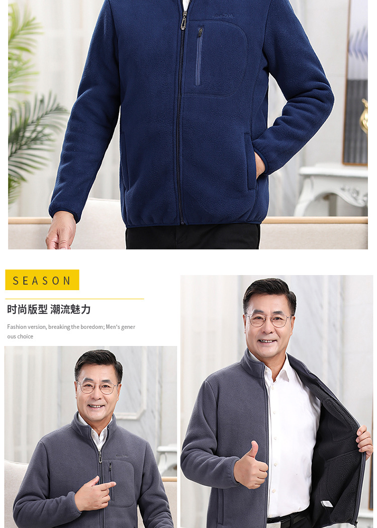 お父さんの大きいサイズのフリースのスウェットの中で年配の男性の秋の服のコートはスウェットの中年の男性のおじいさんのジャケットをつかみます。