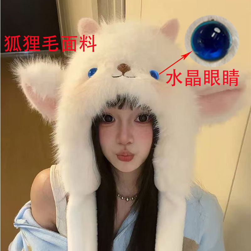 可爱猫咪毛绒帽女秋冬保暖护耳加厚显脸小卡通雷锋帽毛茸茸