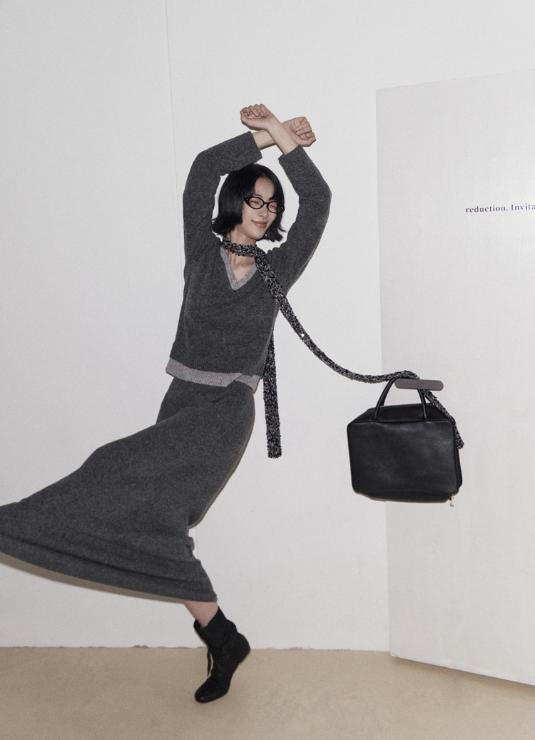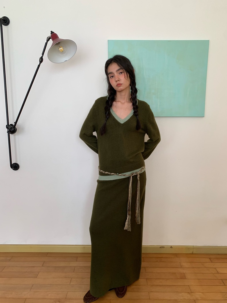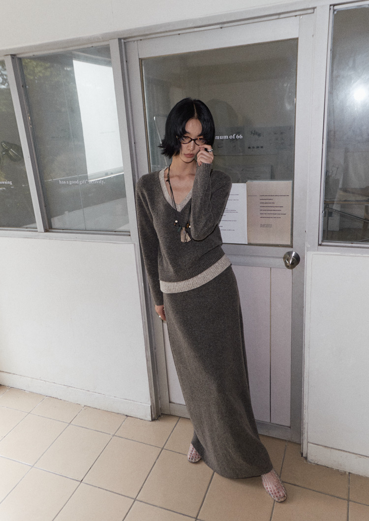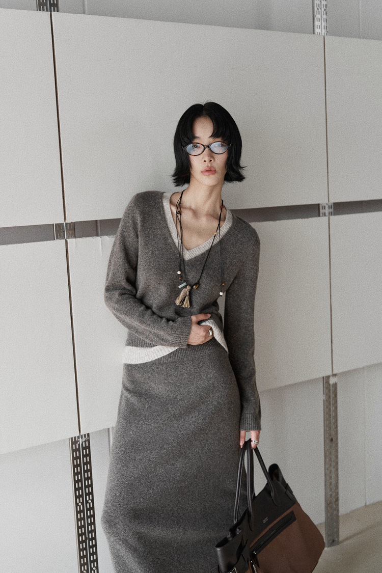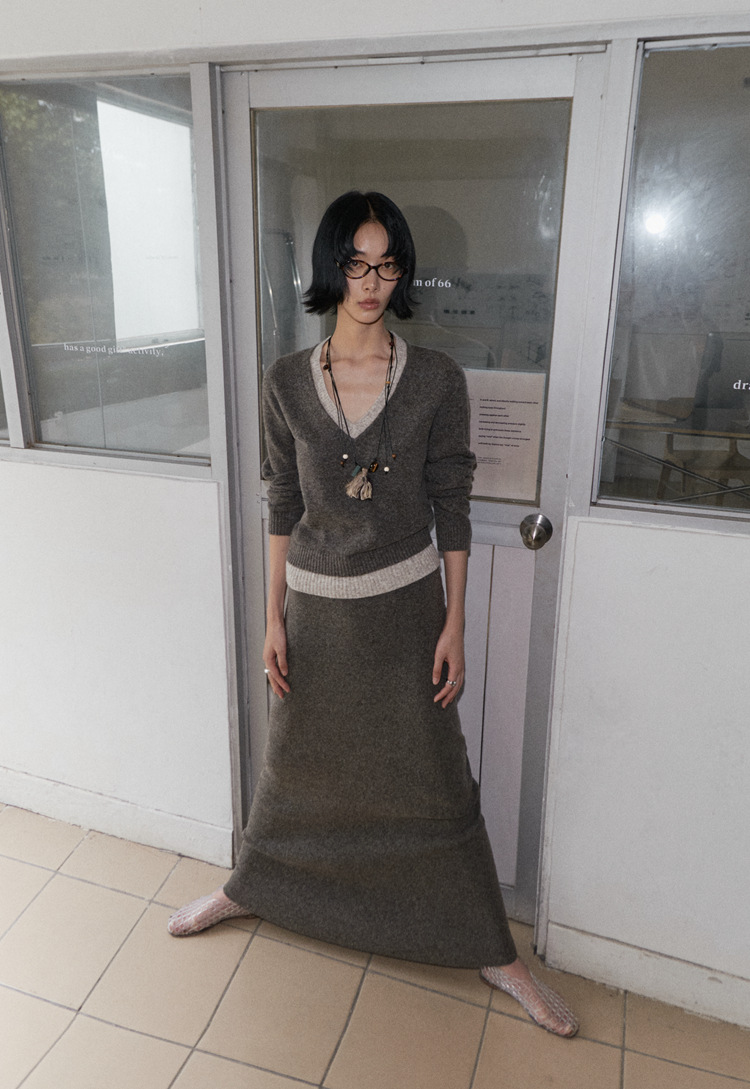 UNITY MODE miuシリーズ コントラストカラーVネックウールセーター レディース 秋冬 重ね着 グレー ニット ソフトで柔らかいトップス
