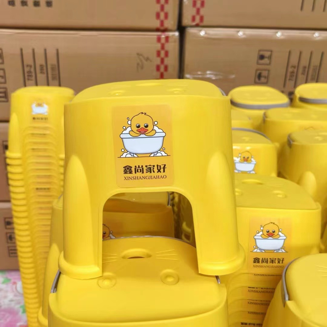 在庫あり、卸売、小さな黄色いアヒルのプラスチック製スツール、子供用のポータブル小型スツール、プラスチック製の漫画の小さなスツール、印刷可能