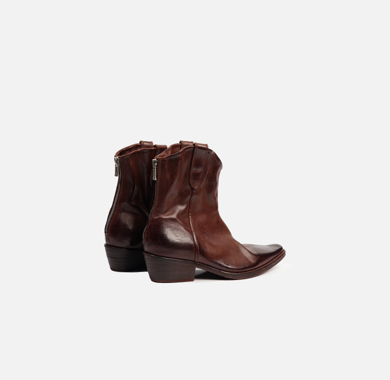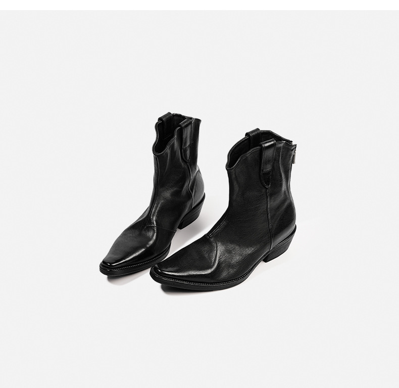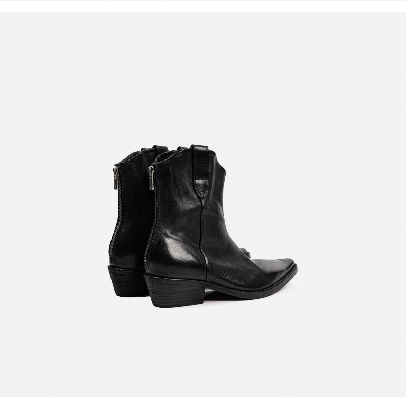 水洗马皮西部靴女骑士长靴 冬新款全真皮方头粗中跟套筒V口及膝靴
