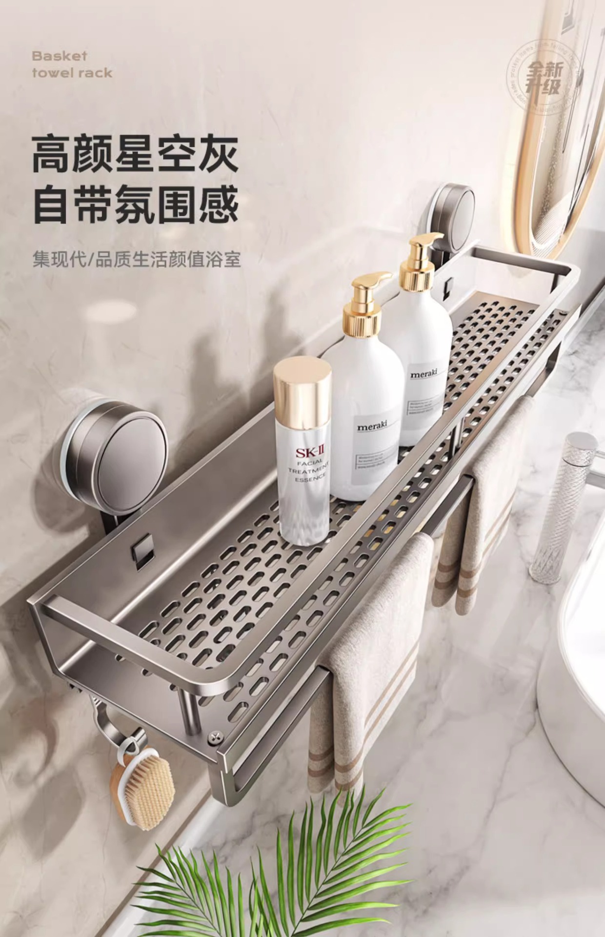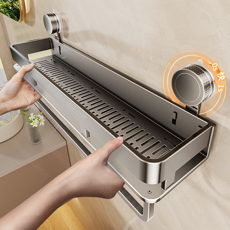スペースアルミ穴なしトイレ吸盤ラック壁掛け式浴室タオルラック洗面台多機能収納