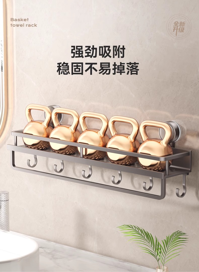 炭素鋼製トイレ吸盤式収納ラック 壁掛け式 穴あけ不要 浴室タオル掛け 洗面台 多機能収納