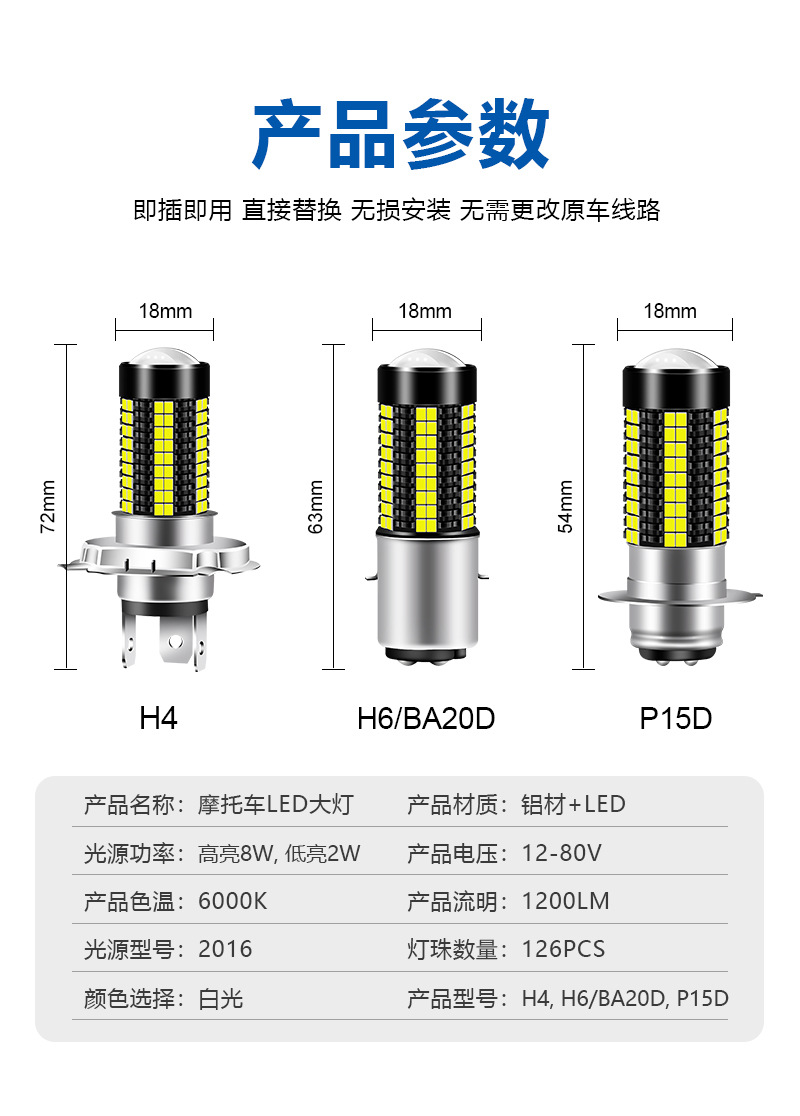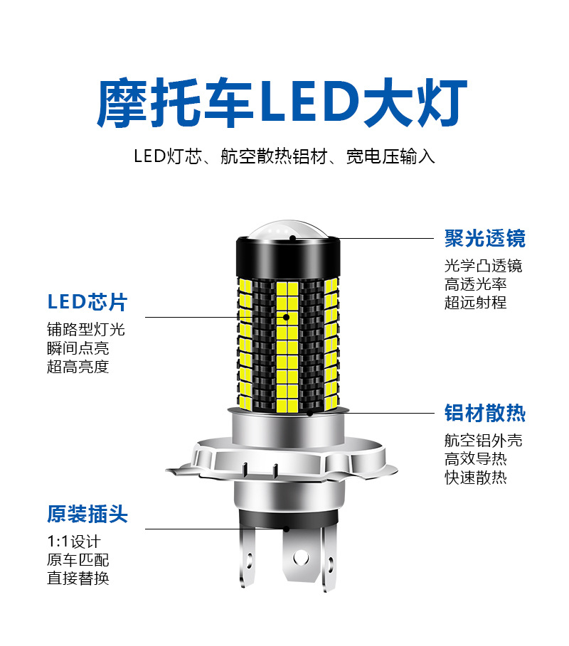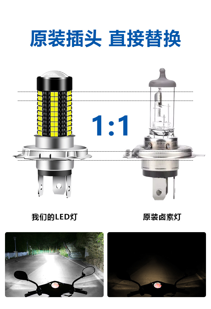 天使眼跨境专供新品led摩托大灯H4 BA20D P15D白黄双色超高亮前大