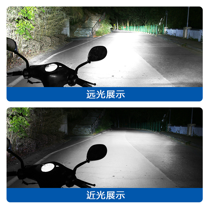 摩托车电动车前大灯LED灯泡双色透镜灯12-80V通用射灯泡