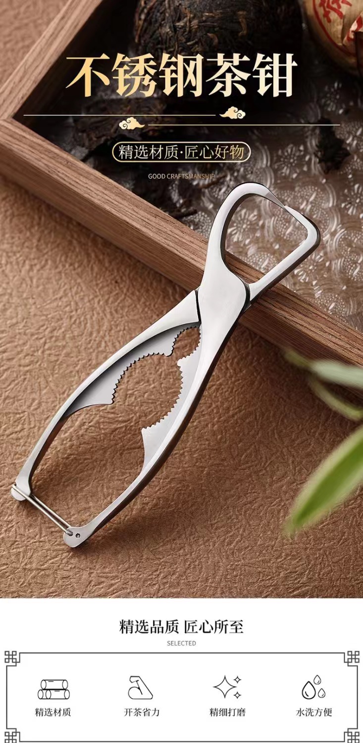 新しい大開口ブラスト茶鉗子プーアル茶煉瓦鉗子多目的茶鉗子茶餅工具茶道部品開茶器