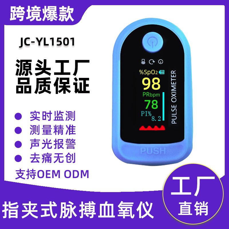 跨境JC-YL1501蓝白款宝石血氧仪 指夹式脉搏饱和度PI心率监测血氧