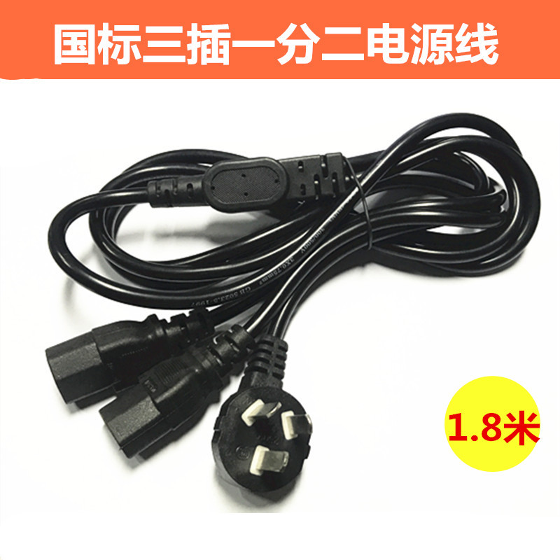 三芯国標1分2電源コード、1分2品字型銅メッキ汎用コンピューターホスト電源コード1.8m