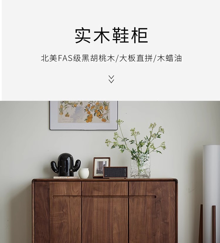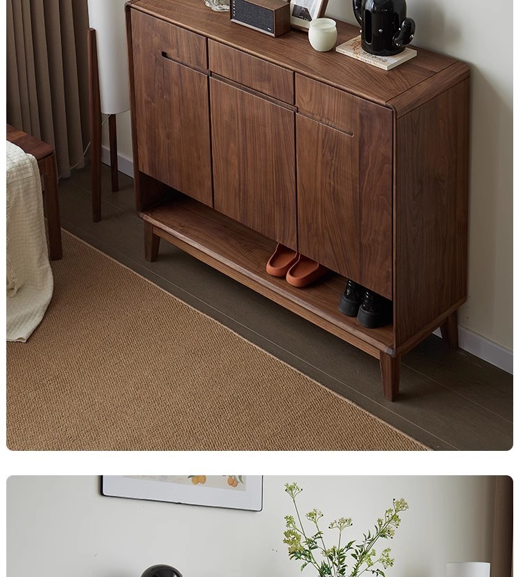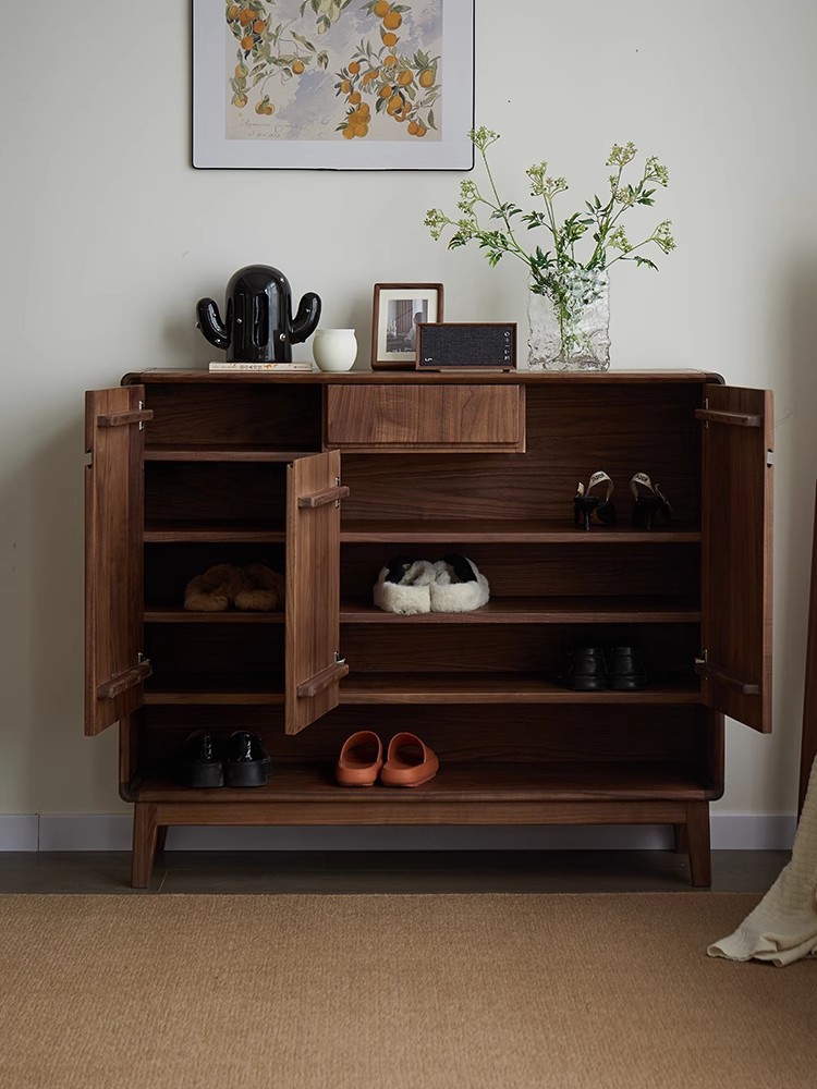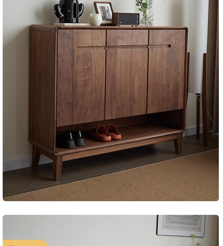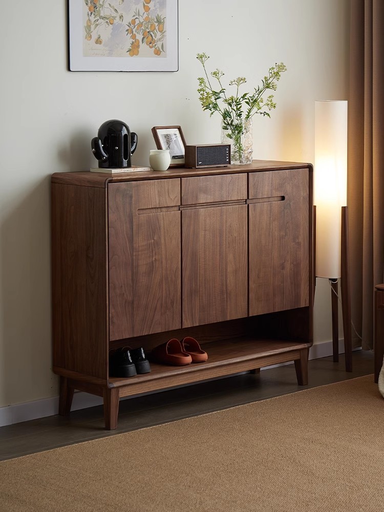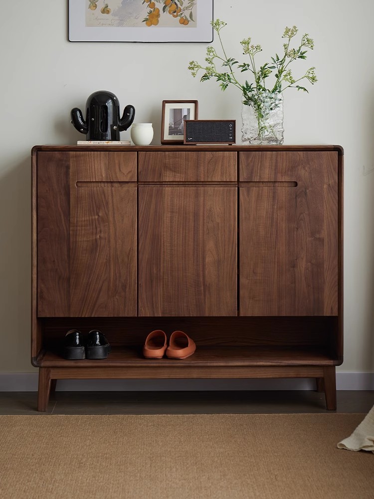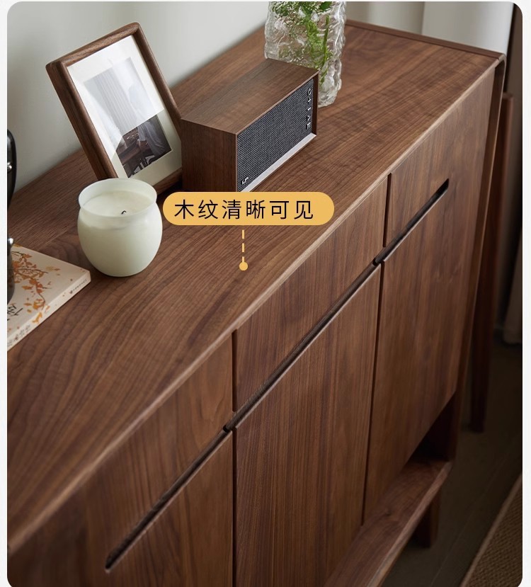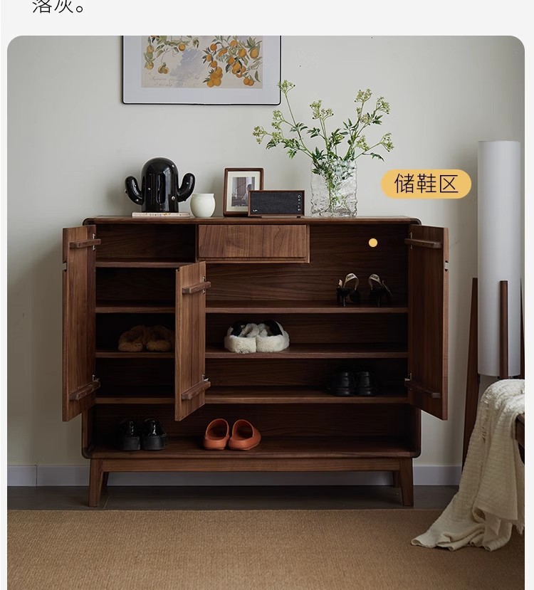 北米黒胡桃木下駄箱全実木入戸玄関キャビネット現代シンプル桜桃木大容量収納キャビネット