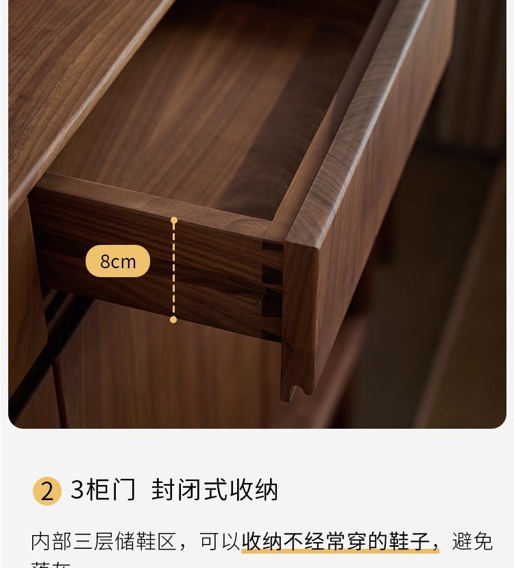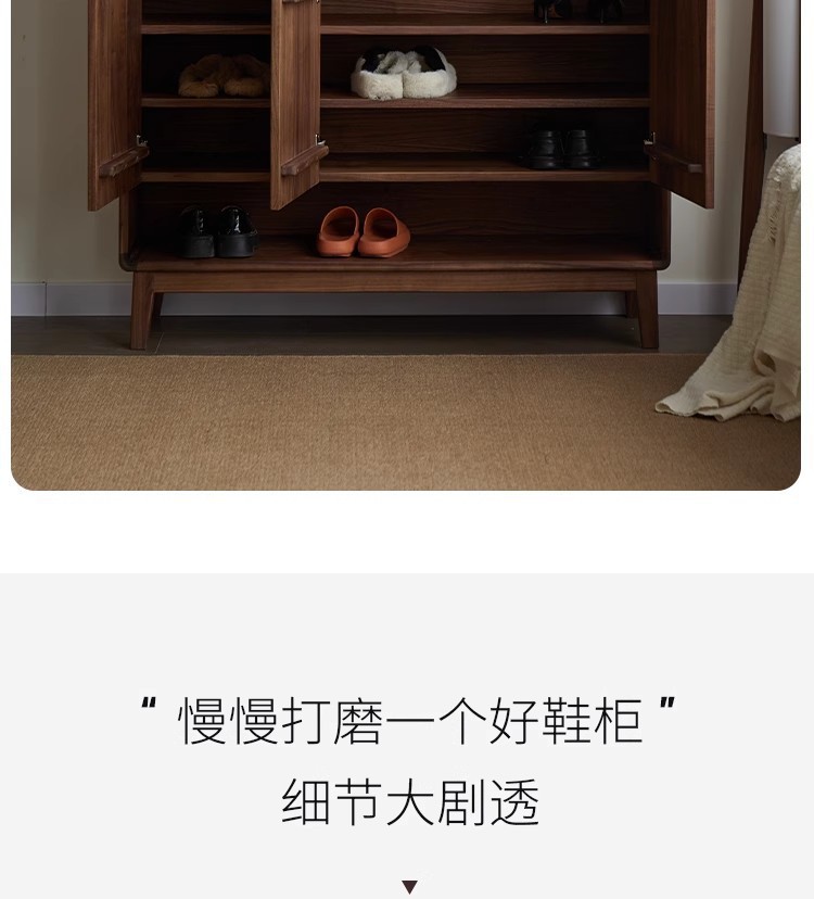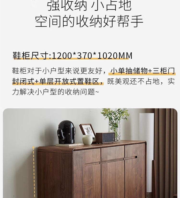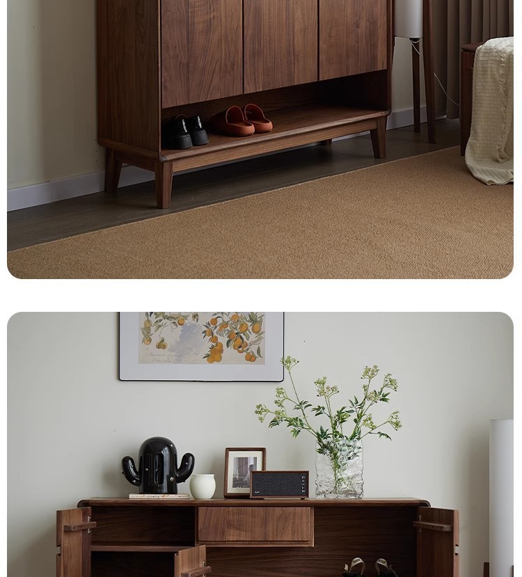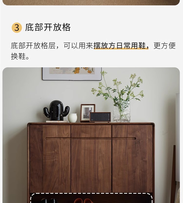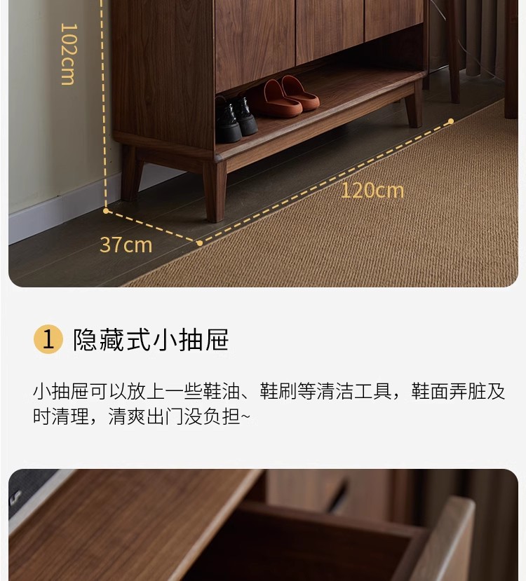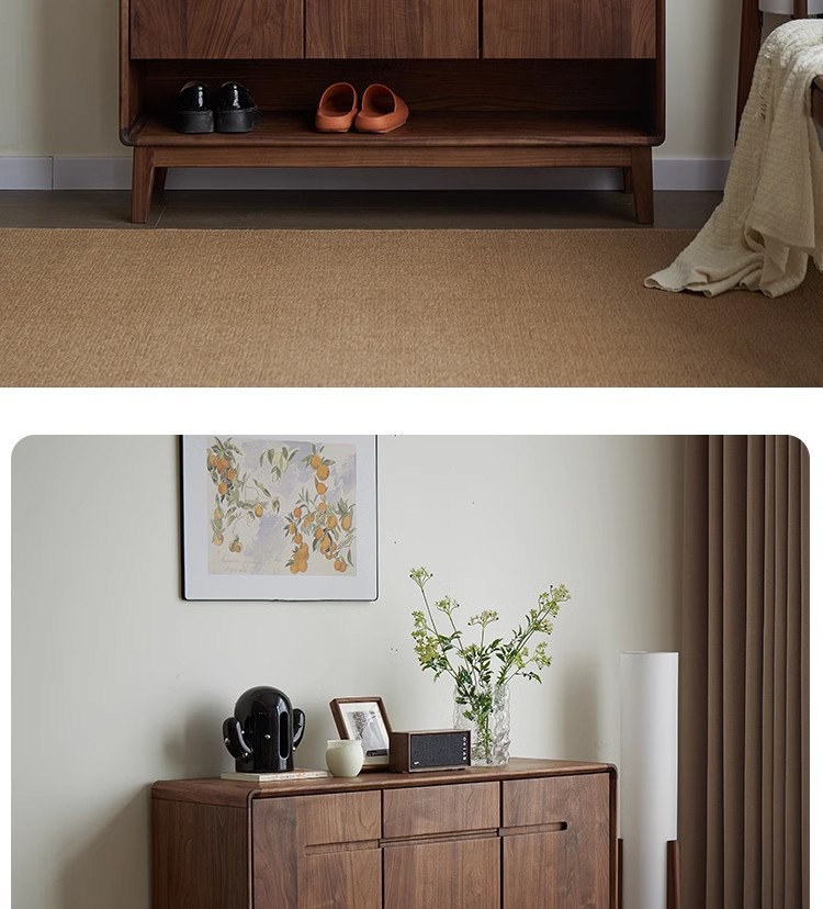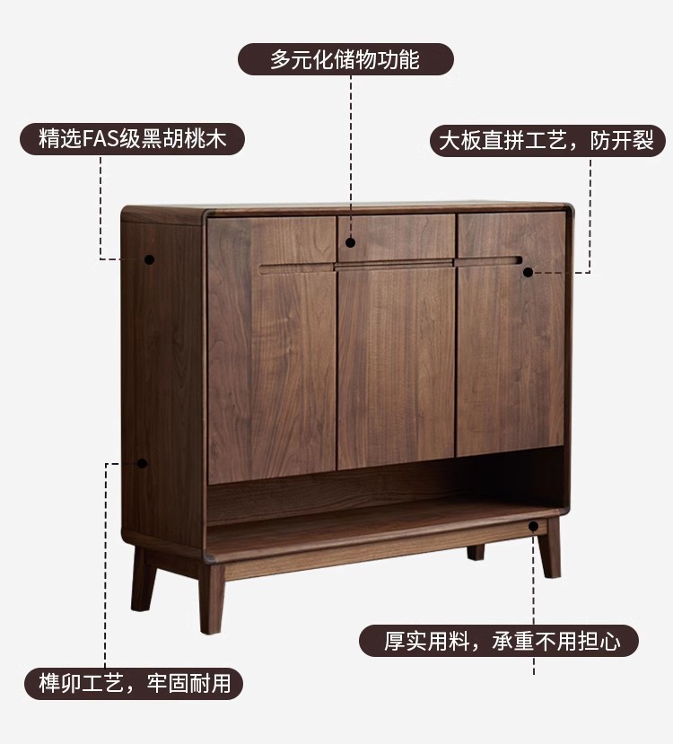 北米黒胡桃木下駄箱全実木入戸玄関キャビネット現代シンプル桜桃木大容量収納キャビネット