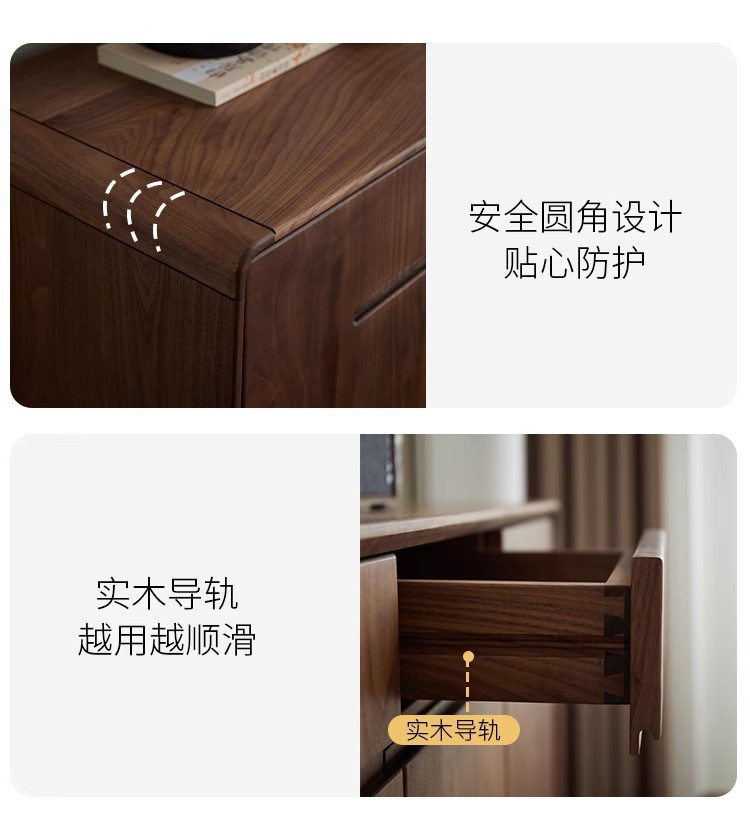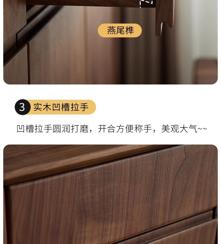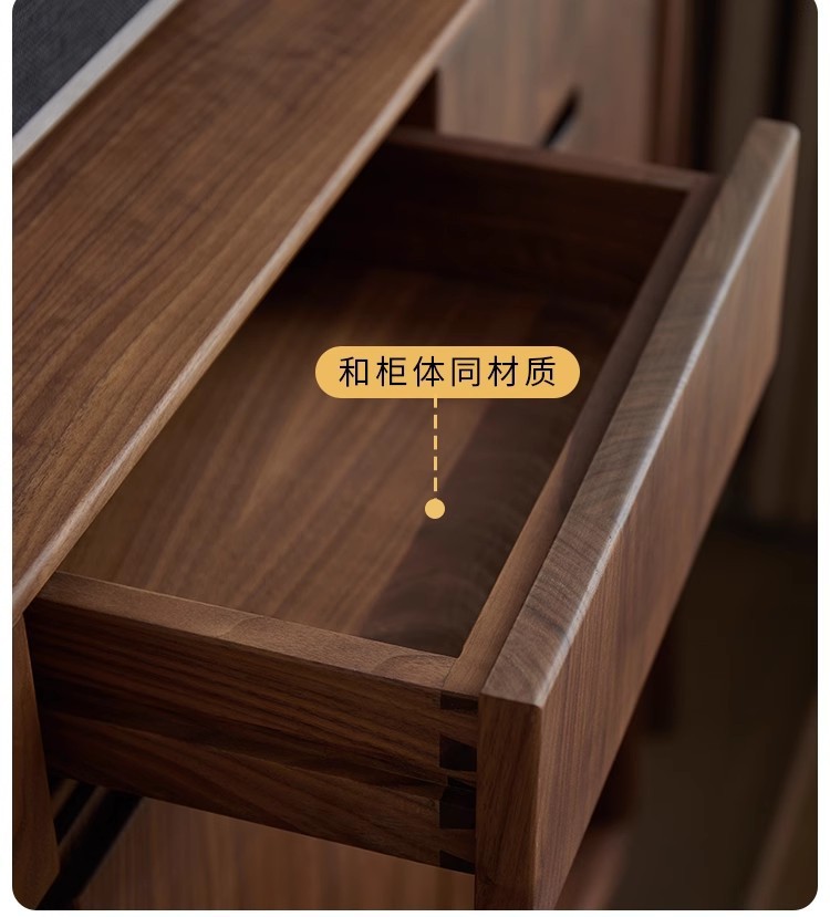 シンプルモダン八斗キャビネット寝室リビングサイドキャビネット北アメリカ黒胡桃実木ベッドテール収納収納収納引き出しキャビネット