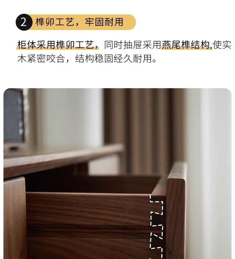 北米黒胡桃実木八斗キャビネット北欧シンプル寝室リビングルーム原木収納収納引き出しキャビネット寂風