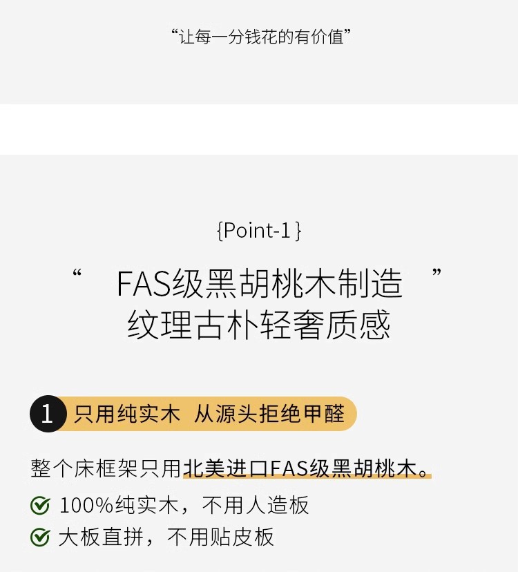 北欧レトロ実木床北米黒胡桃木軽豪華真皮ソフトベッド1.8メートル主臥さくらんぼ木二人