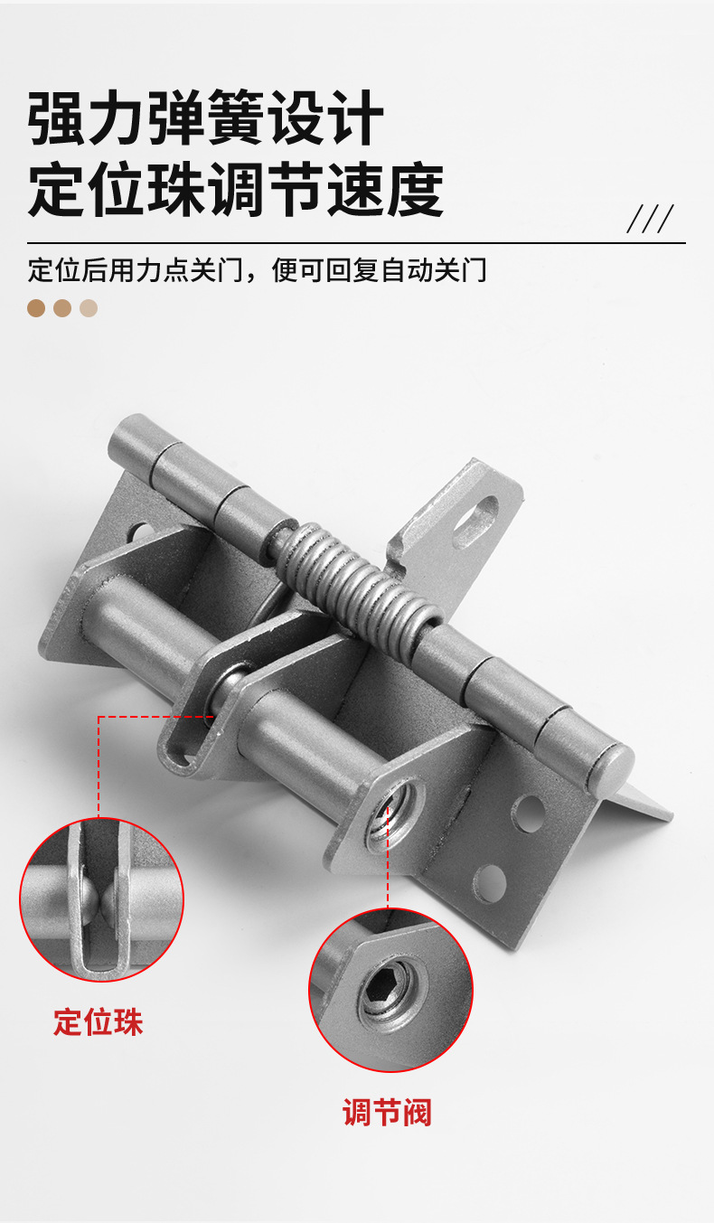 自动关门合页木门铰链多功能闭门器带定位90度4寸隐形门弹簧合页