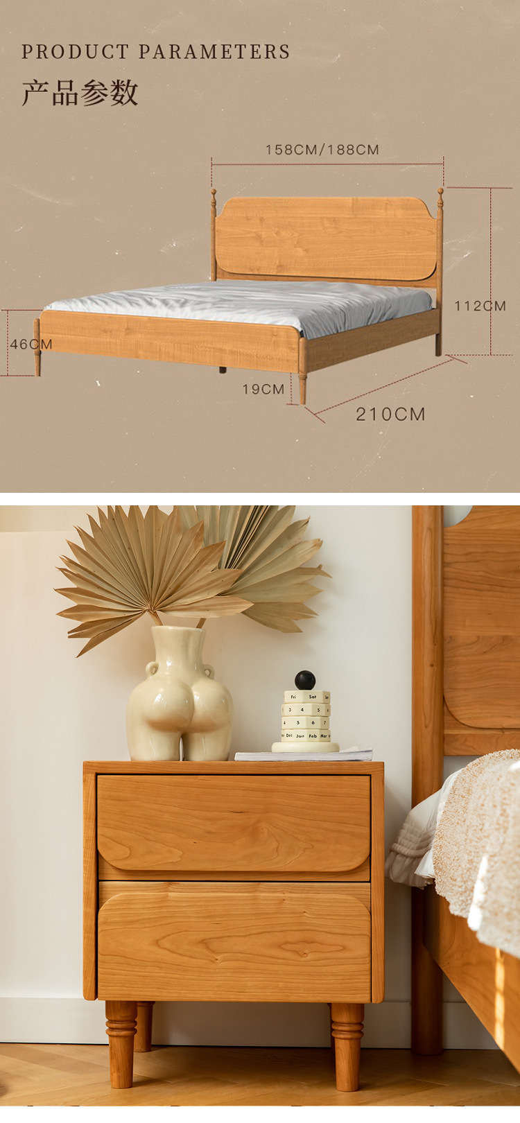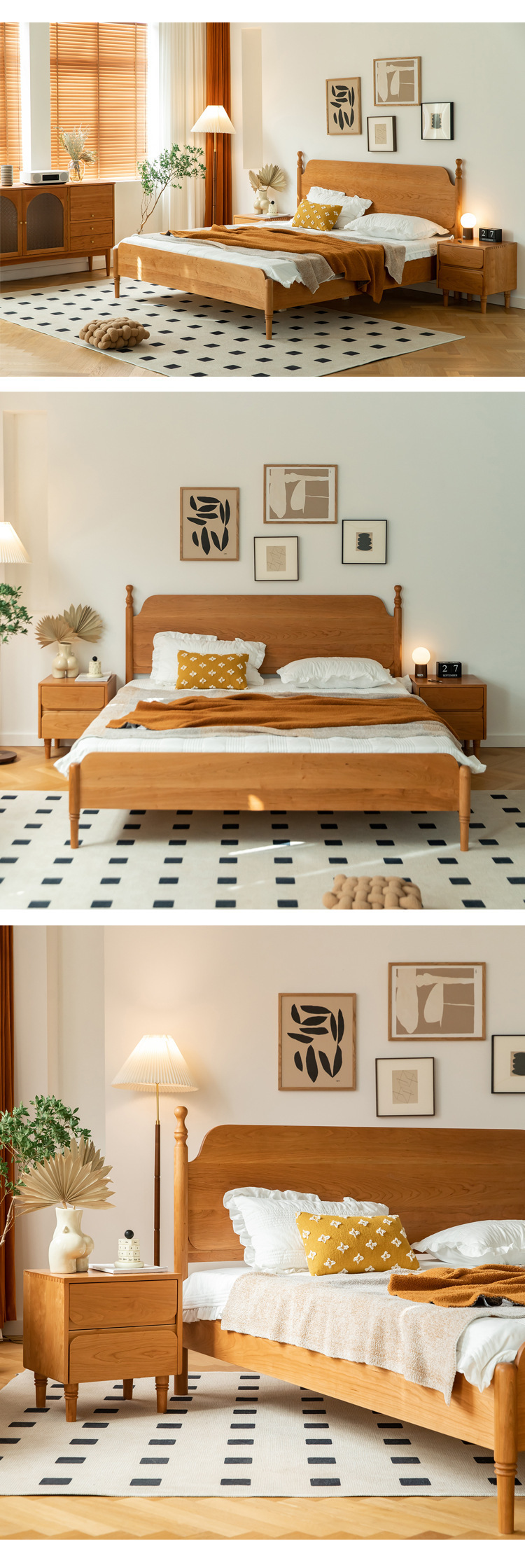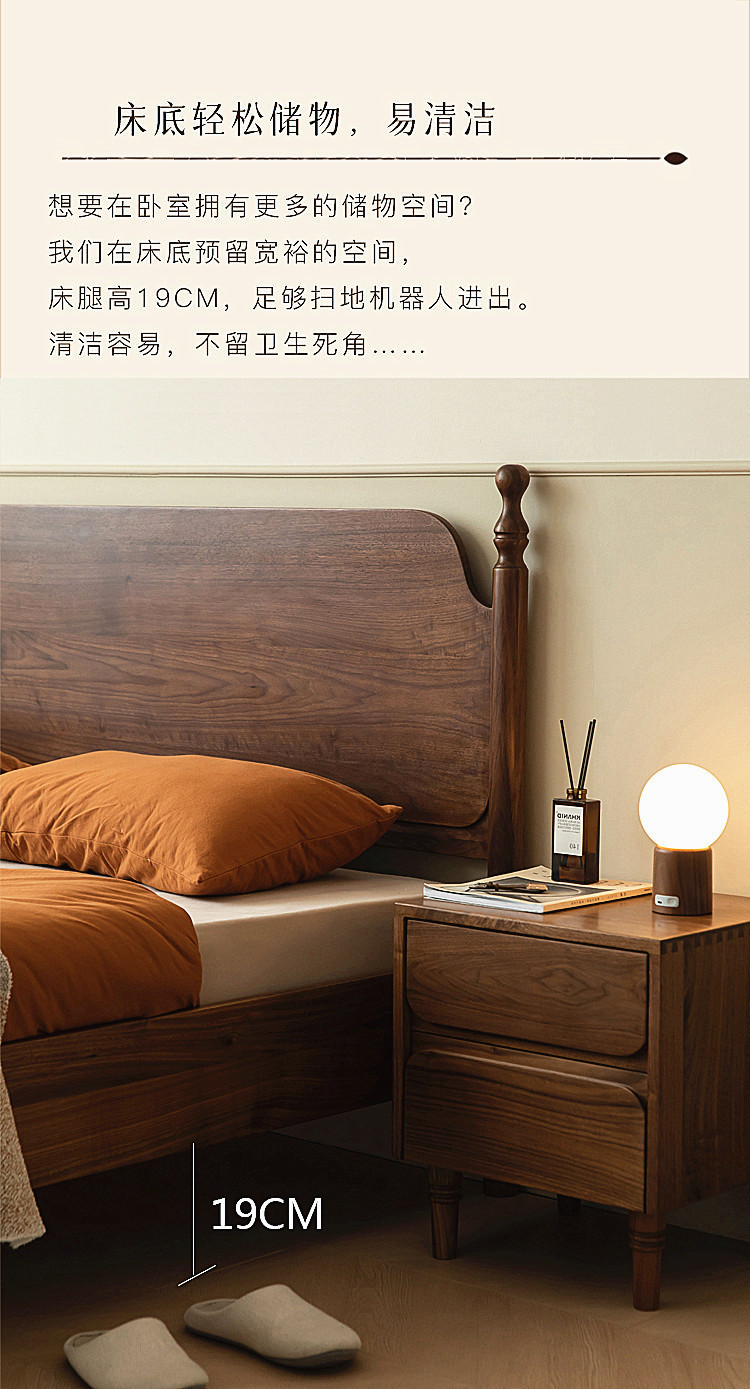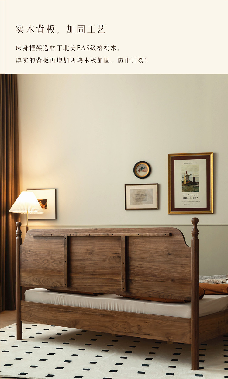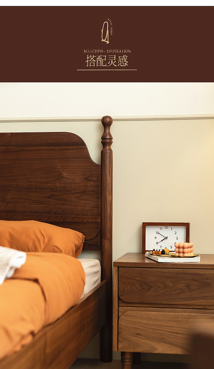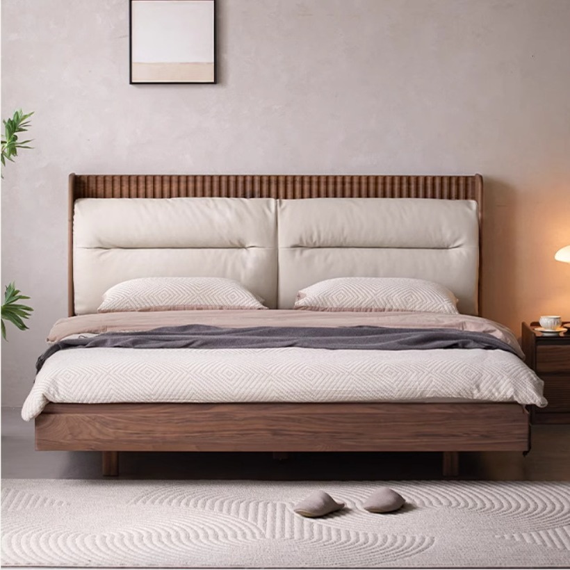 北欧レトロ実木床北米黒胡桃木軽豪華真皮ソフトベッド1.8メートル主臥さくらんぼ木二人