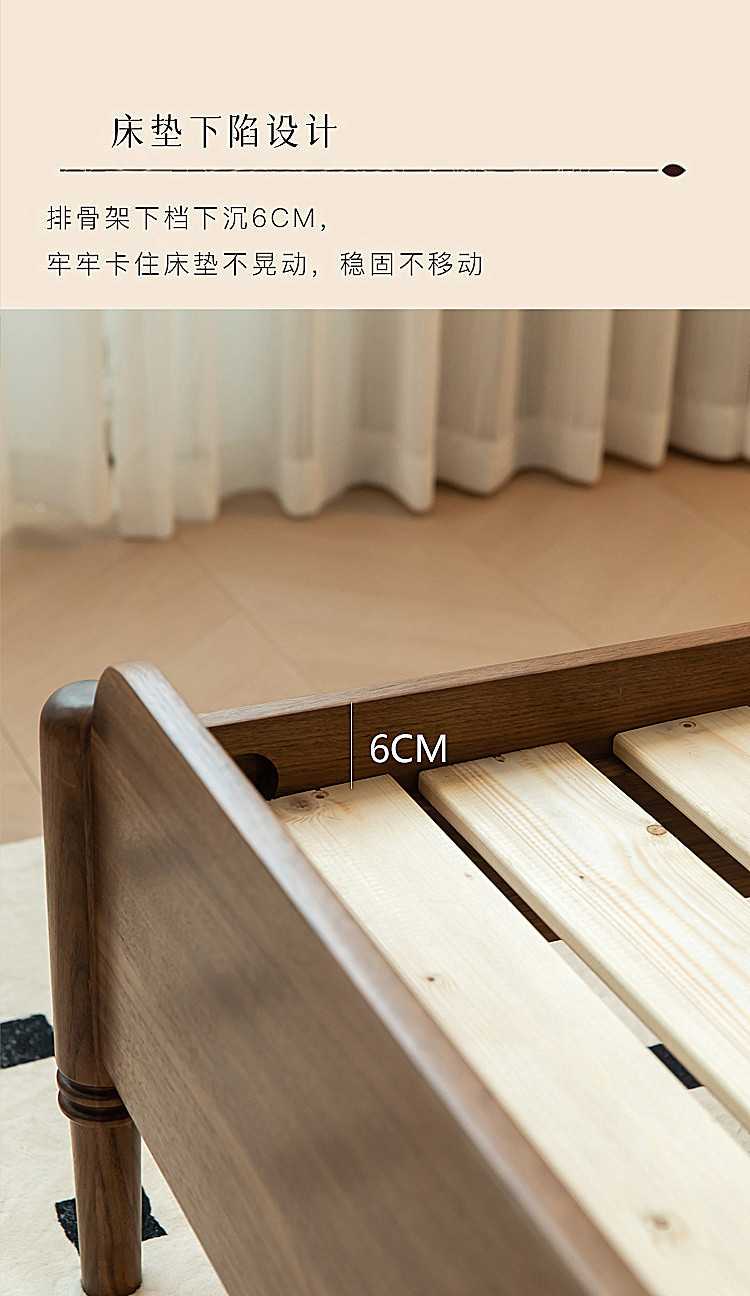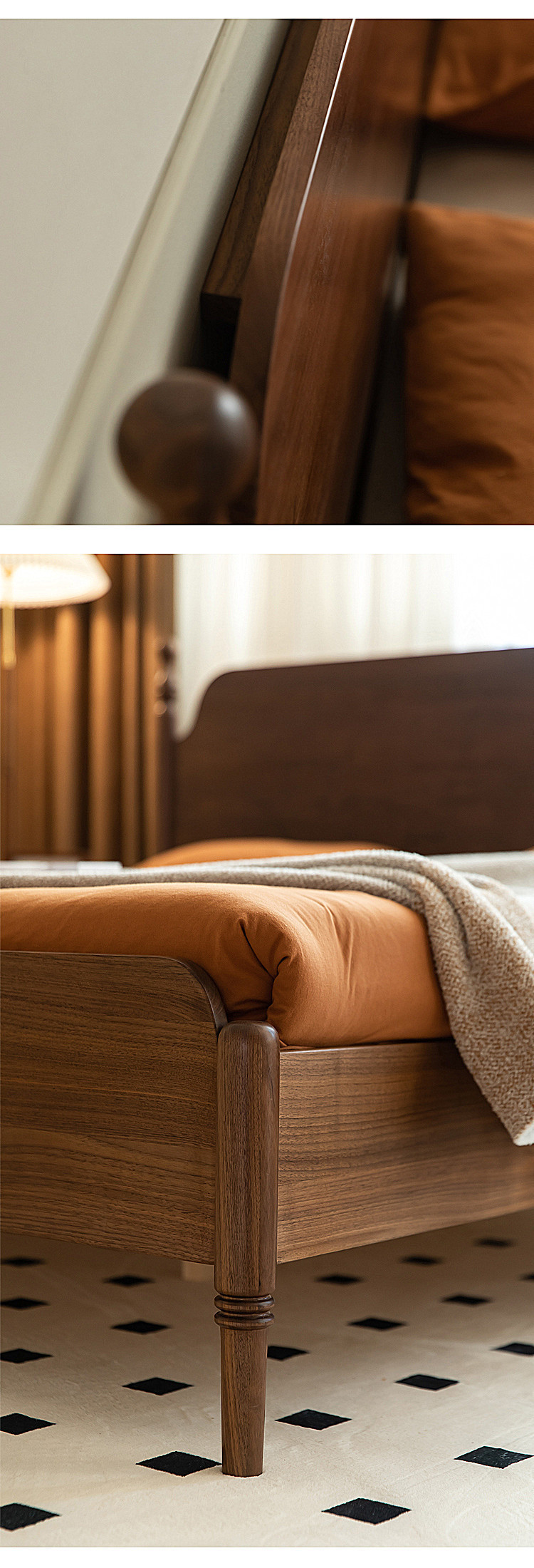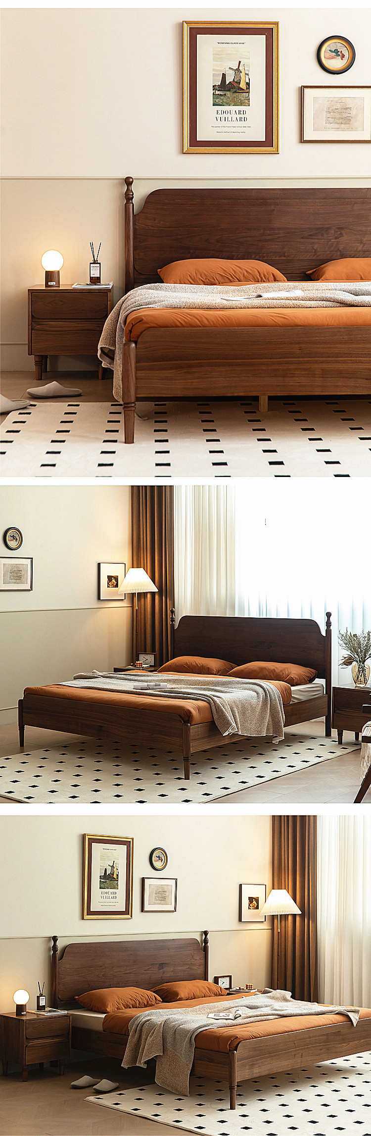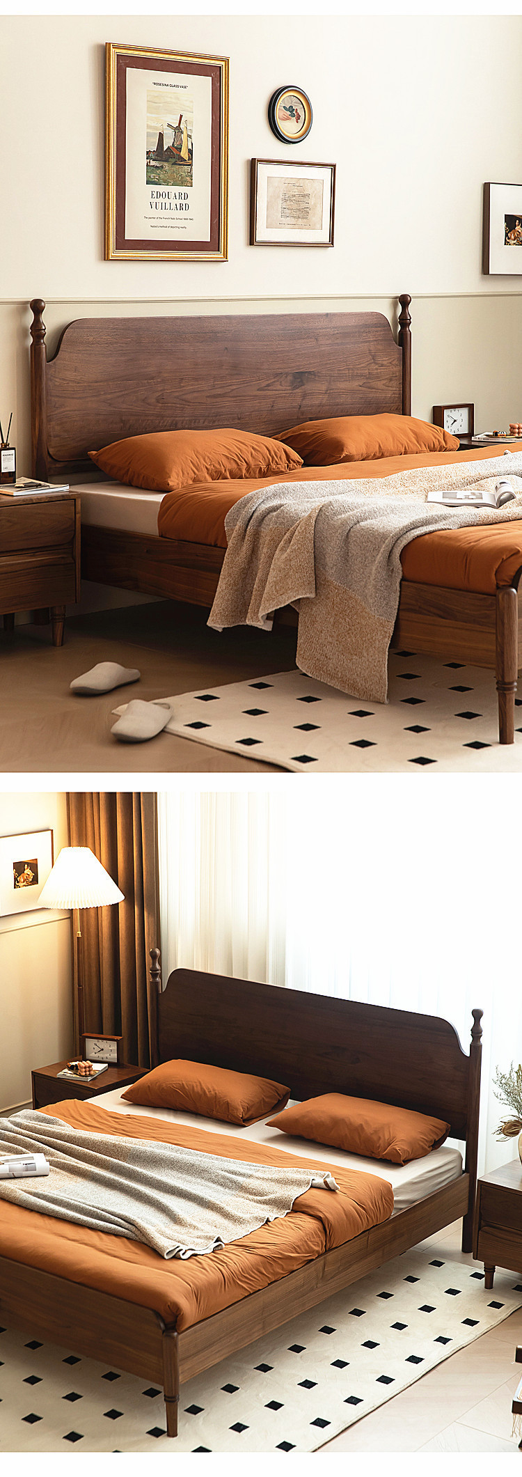 北米黒胡桃木床復古アメリカ全実木ツインベッド現代シンプル桜木主臥1.8メートルベッド