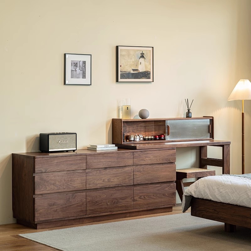 北米黒胡桃実木八斗キャビネット北欧シンプル寝室リビングルーム原木収納収納引き出しキャビネット寂風