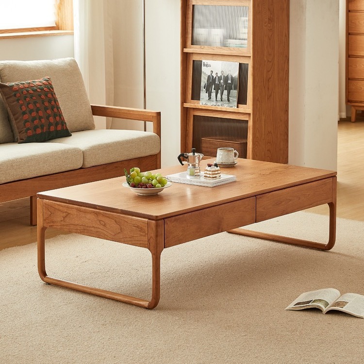 北欧シンプル全実木客間家庭用桜木小戸型茶卓長方形テレビ盤茶卓セット