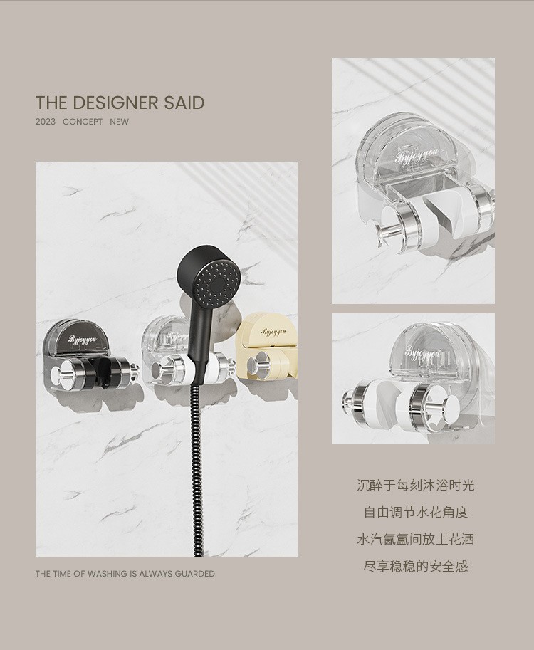 吸盤家庭用移動式シャワーホルダー吸盤式穴なし壁掛けシャワー室固定風呂自在調節可能