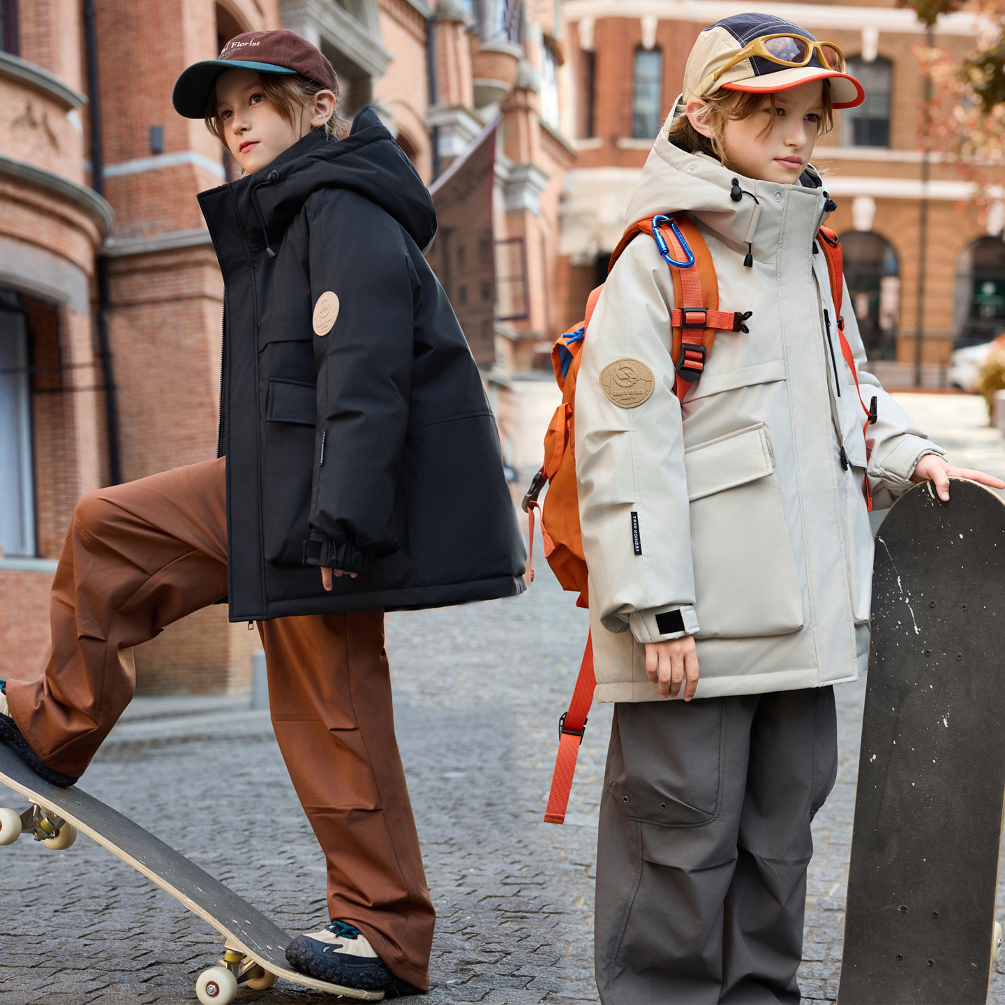 儿童工装羽绒服韩版男童女童中大童加厚连帽白鸭绒防风外套洋气潮