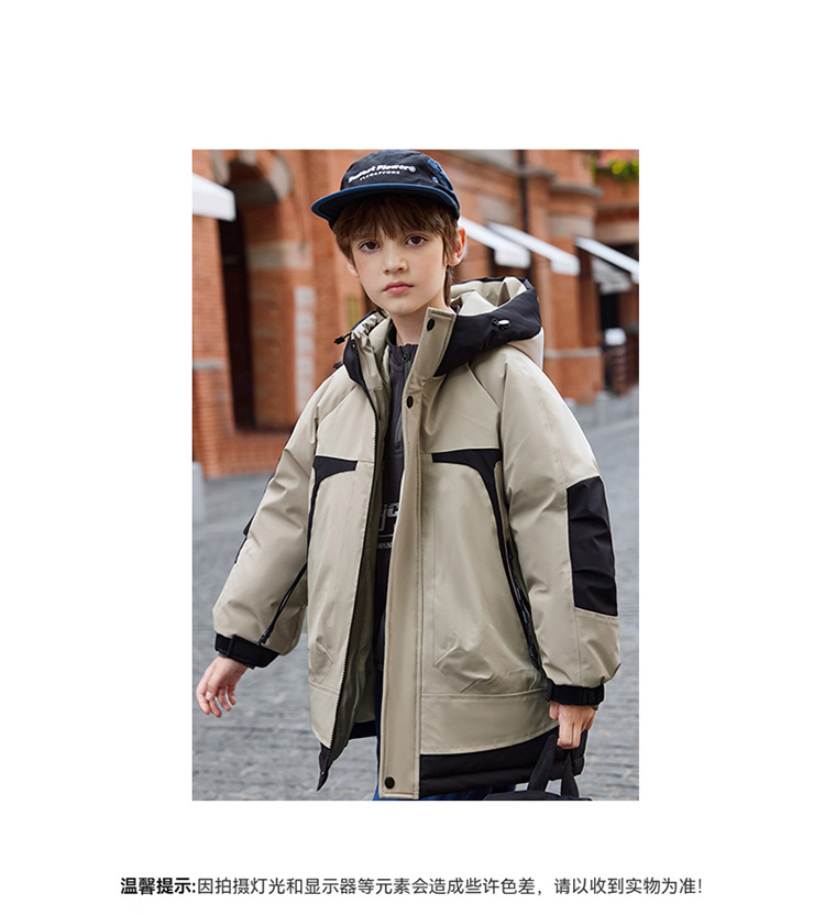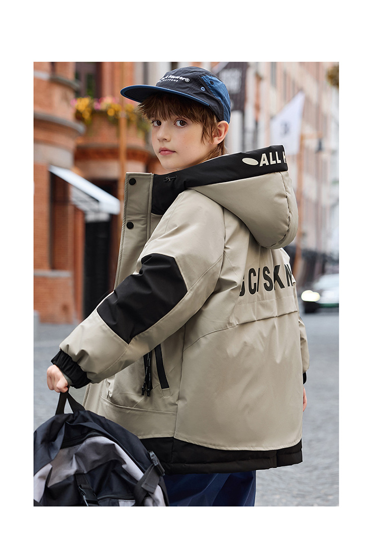 2024新型男児ダウンジャケットは冬の白鴨絨毛少年の中の大童フードと保温コートが流行している