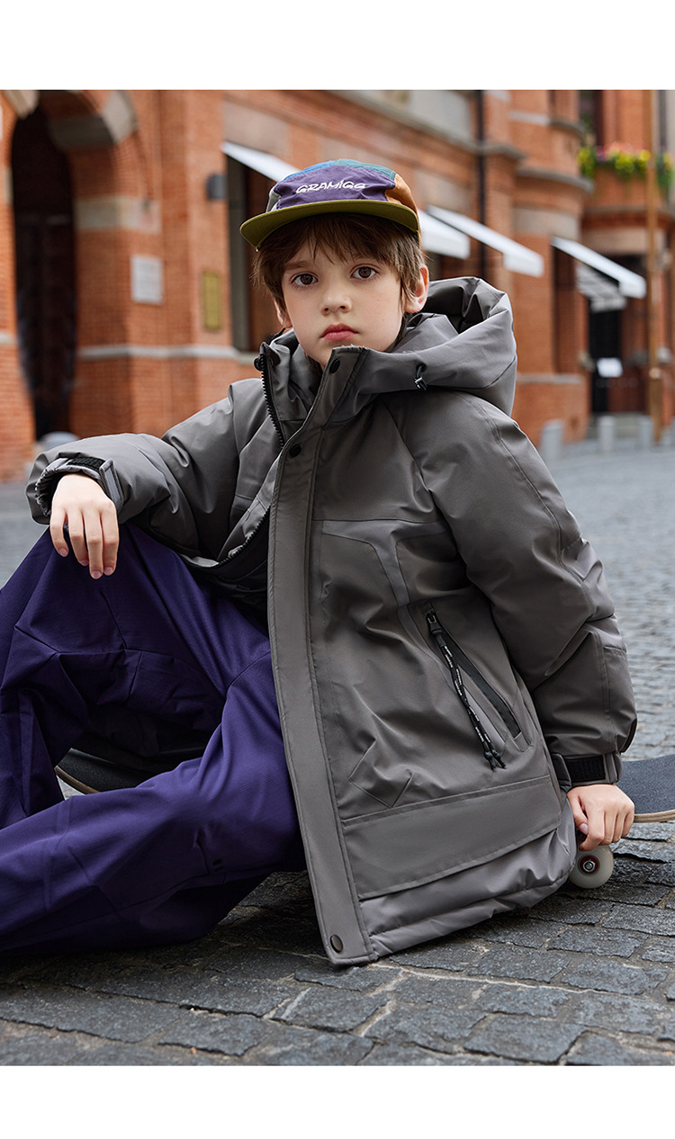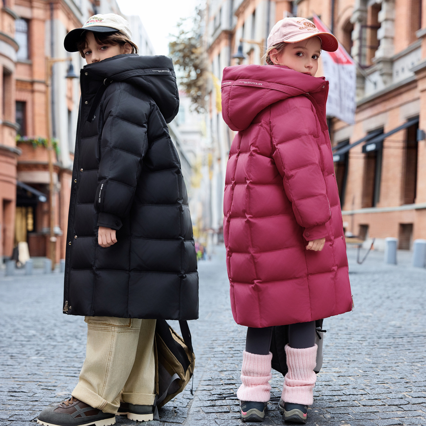 冬季新款男童羽绒服中长款加厚白鸭绒女孩中大童连帽防风保暖外套