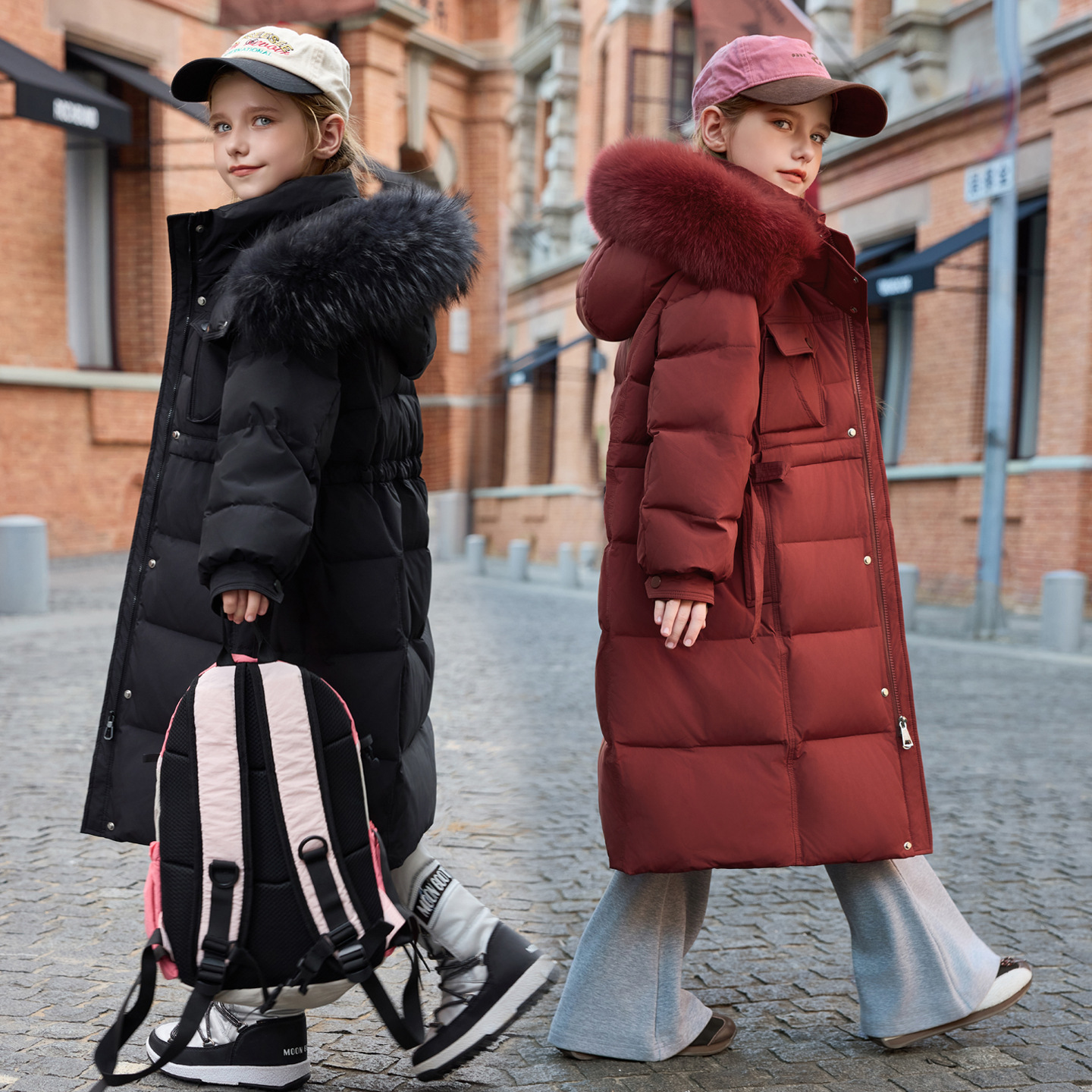 2025冬季新款女童羽绒服中长款加厚女孩中大童白鸭绒连帽保暖外套