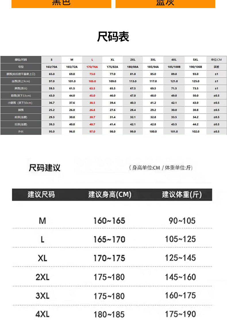 M( 50kg ),L( 60kg ),XL( 70kg ),XXL( 80kg ),3XL( 87.5kg ),4XL( 95kg )