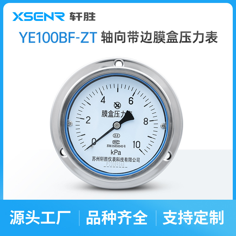 YE100ZTステンレスケース軸方向エッジ付きパネル式フィルムボックス圧力計微圧正負圧圧力計