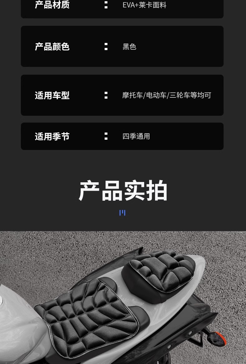 摩托车坐垫防水减震耐高温耐磨损高弹力减震抗压双重防滑骑行坐垫