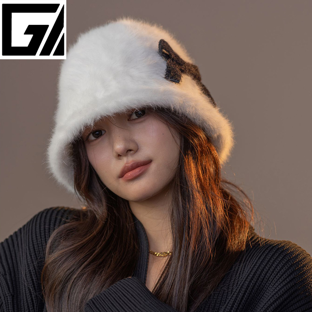 纯色兔毛渔夫帽女25年秋冬新款毛绒盆帽时尚保暖百搭水桶帽显脸小