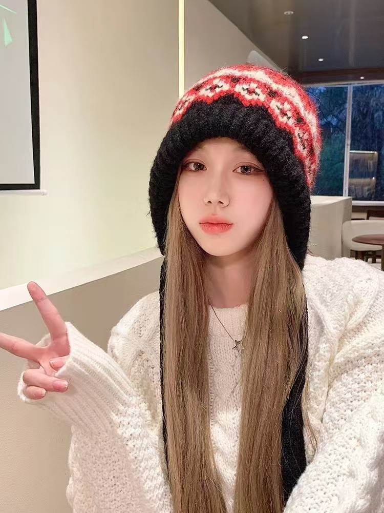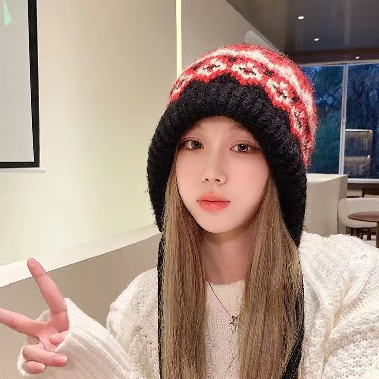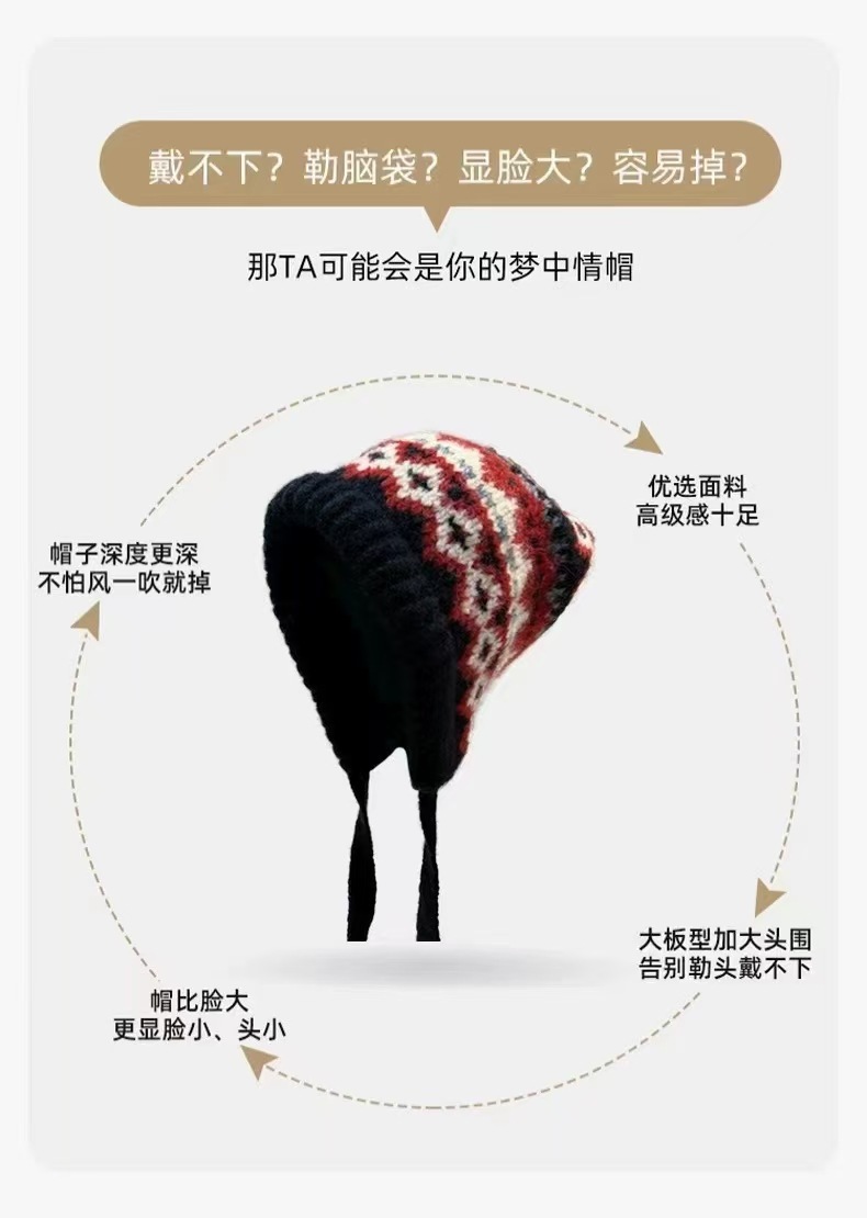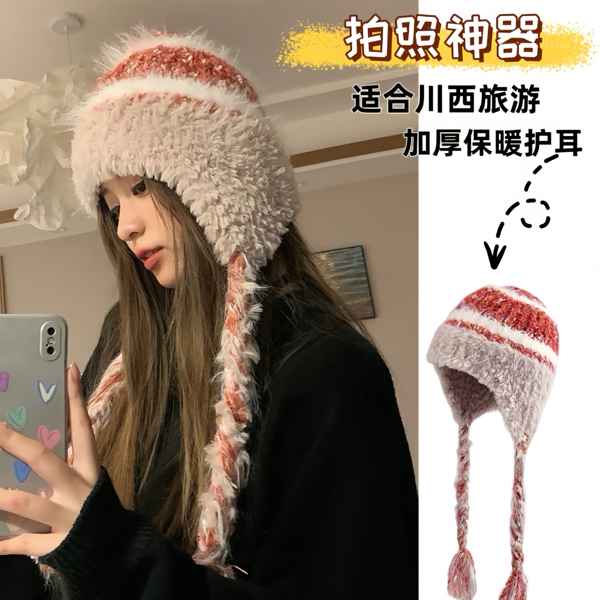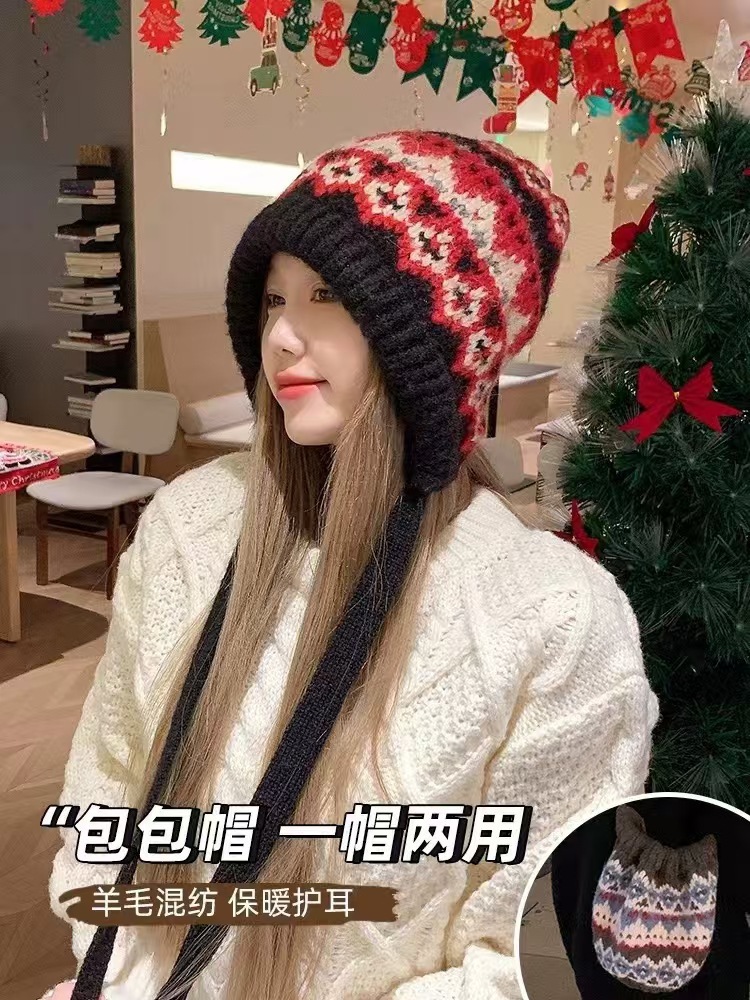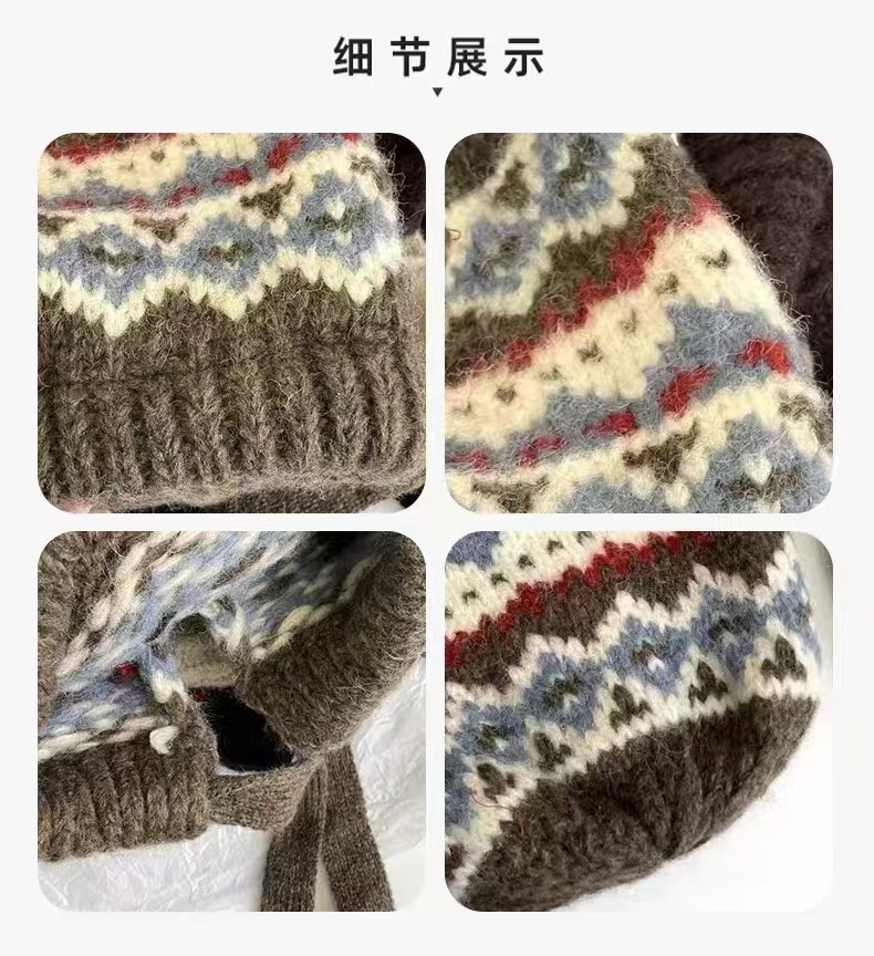秋冬针织帽费尔岛护耳毛线帽子女款加厚保暖帽冬季针织包头雷锋帽