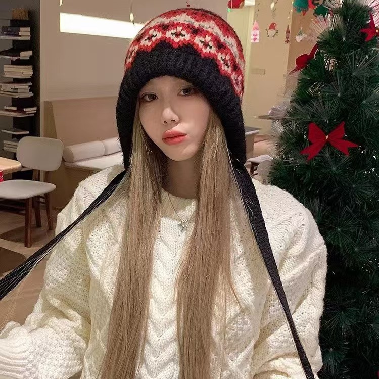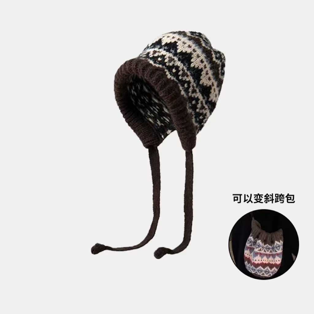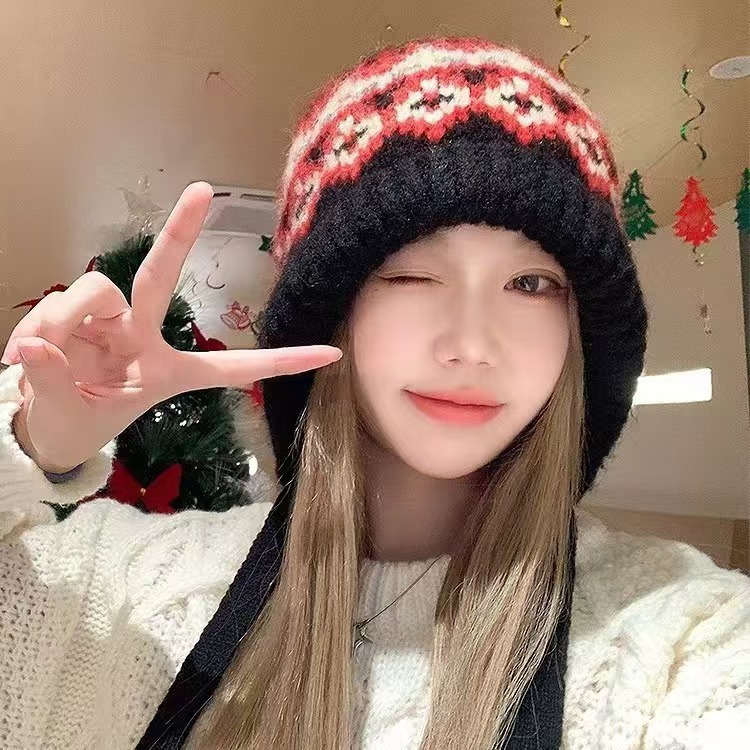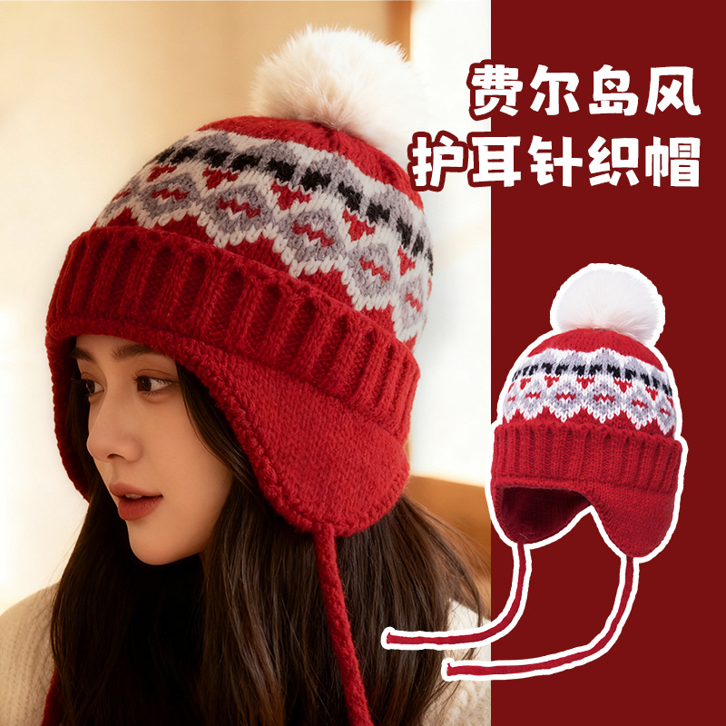 费尔岛风针织帽加厚东北防风防寒雷锋帽冬季加厚保暖护耳提花帽子