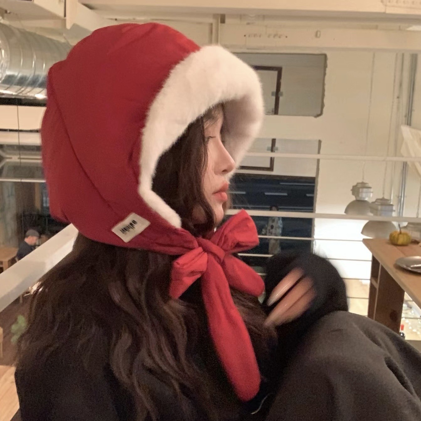 小红帽可爱女生冬季羽绒棉防水包包两用护耳雷锋帽韩国加厚保暖帽