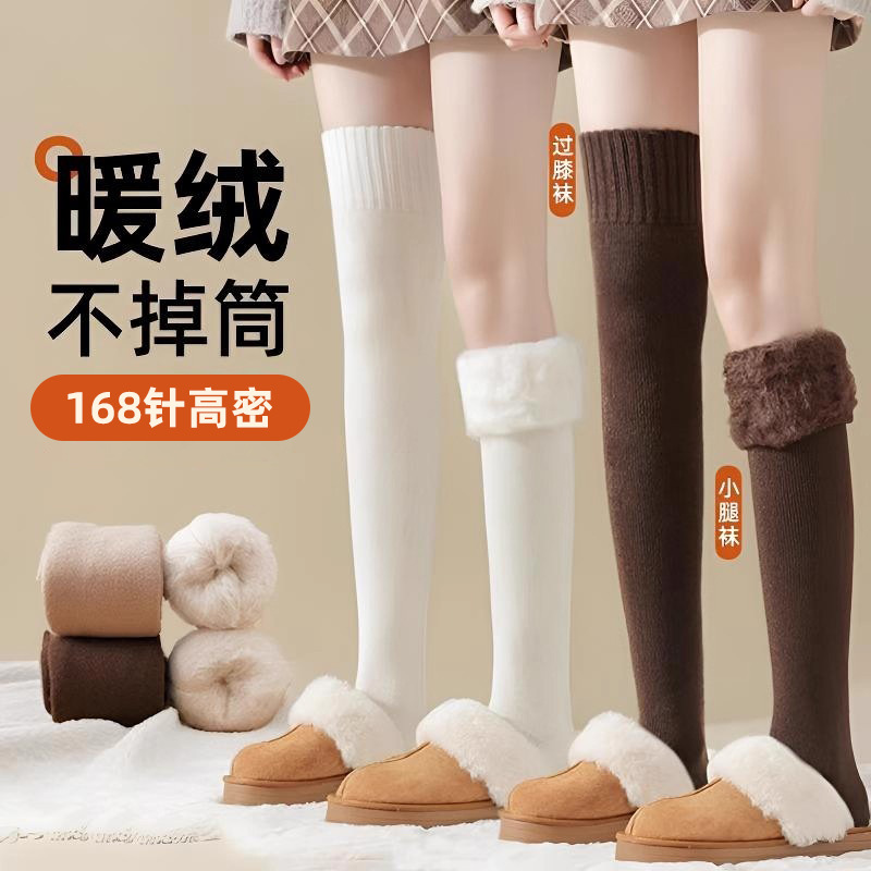 加绒过膝长筒袜女秋冬加厚保暖高筒袜毛圈大腿袜显瘦冬天厚袜子女