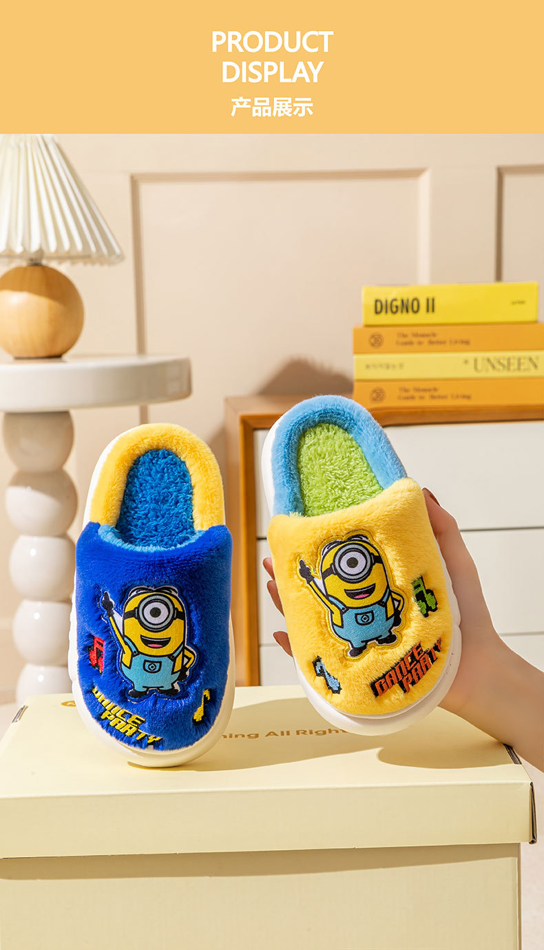 神盗乳父小黄人児童スリッパアニメかわいい家滑り止め綿が男の子の家の室内を保温する