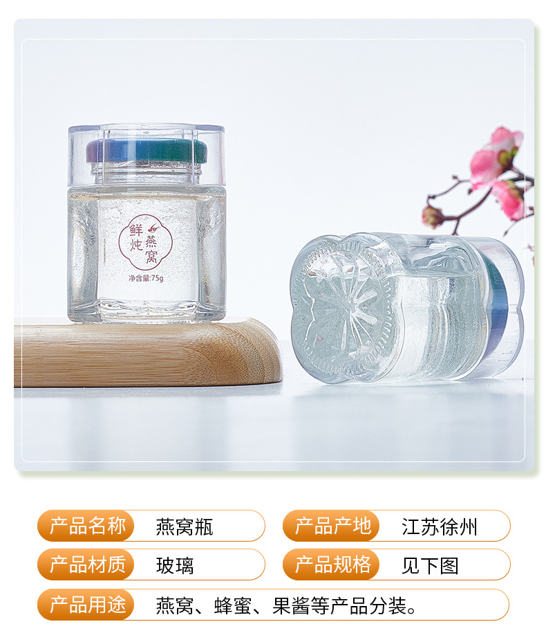 鲜炖玻璃瓶燕窝瓶密封玻璃花胶鱼胶包装瓶可蒸煮耐高温食品分装瓶