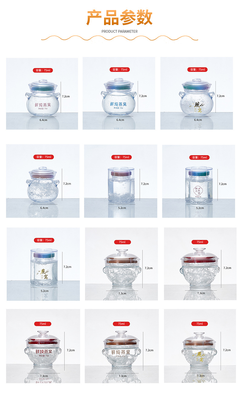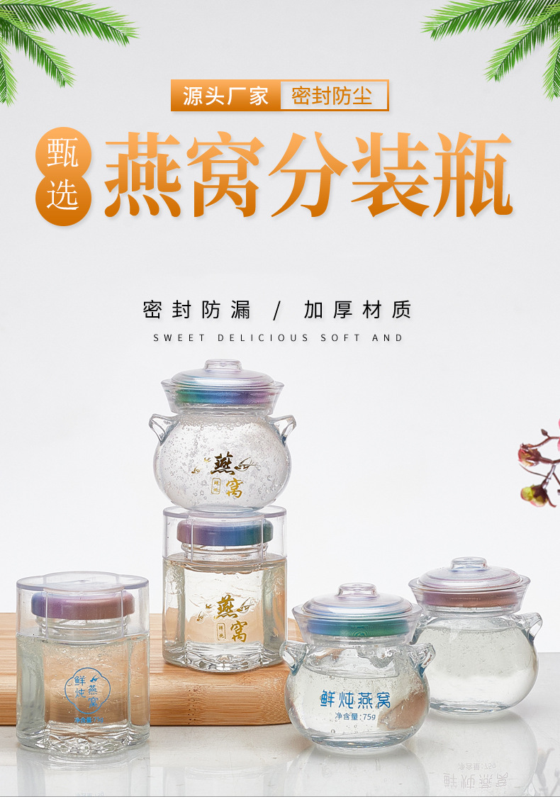批发燕窝分装瓶新款鲜炖玻璃瓶耐高温可蒸煮燕窝瓶家用盅桃胶胶瓶